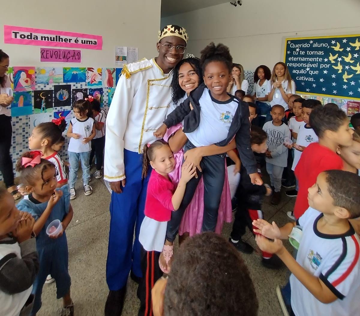A imagem ilustra de forma inequívoca a receptividade que os estudantes estaduais ofertaram aos alunos do município