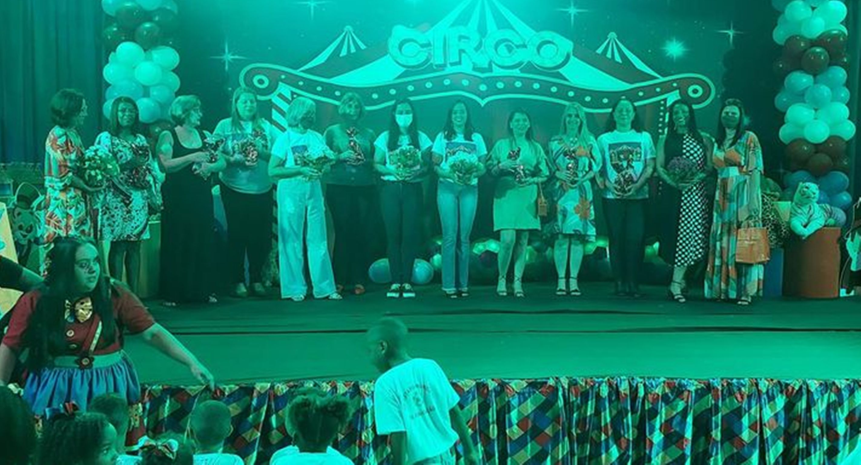 Diretoras, professoras e secretária de Educação foram homenageadas durante a solenidade educacional