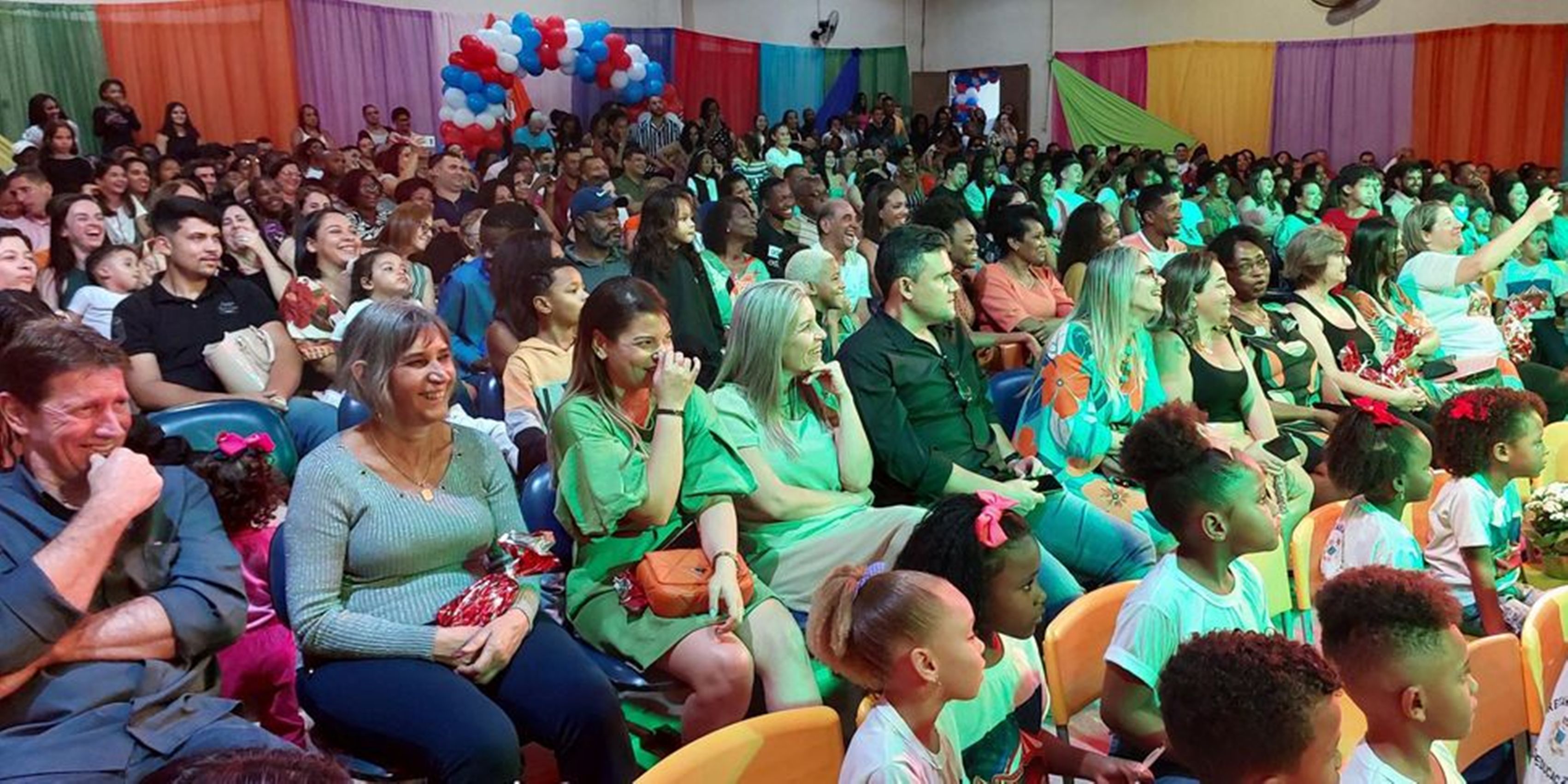 O auditório do Macuco Rural Park ficou completamente ocupado pelas famílias durante a Formatura da Educação Infantil