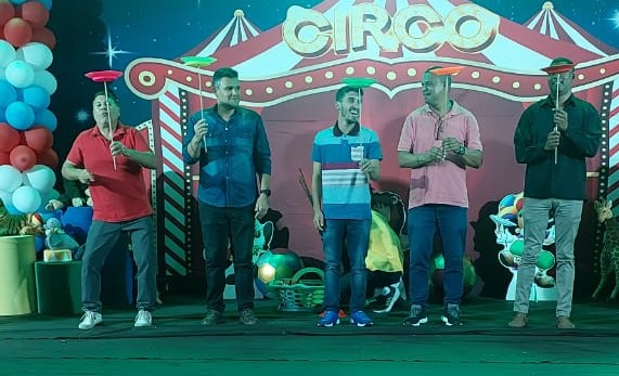 Já íntimos da cidade e muito carismáticos, o palhaço Gepeto e o malabarista da agitação Viola dedicaram à garotada mais uma noite inesquecível e recheada de novidades, arrancando aplausos e sorrisos sinceros de todos. Na sequência, foi retomada a emoção do evento, com a entrega dos certificados, que via de regra foram acompanhados pelas mais do que justas, sinceras e comoventes homenagens aos diretores e professores dos educandários municipais, que ao longo do ano foram o abrigo seguro para o aprendizado e a porta de entrada dos conhecimentos.