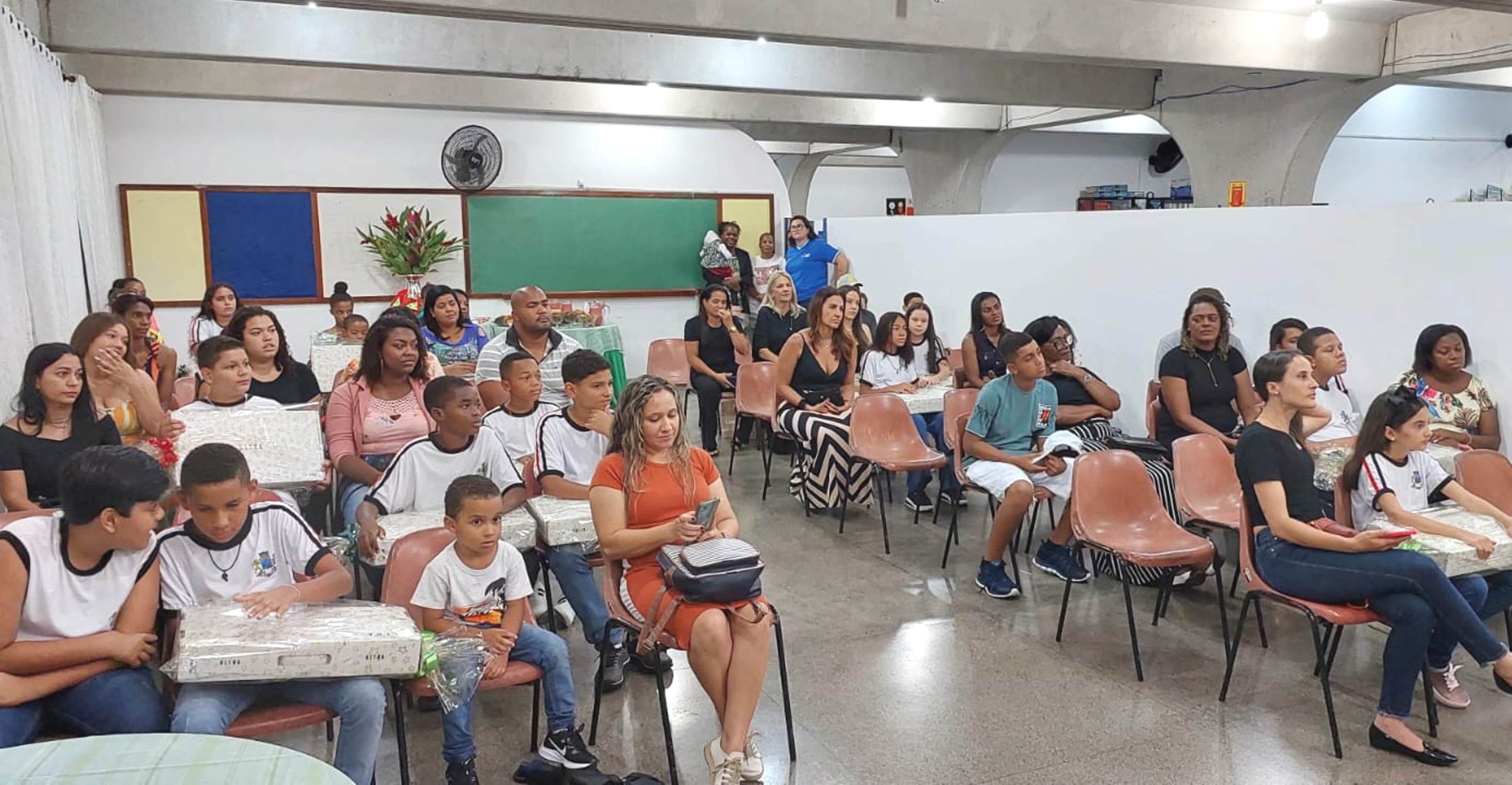 Orgulhosas com o feito de seus meninos e meninas, as famílias compareceram ao Auditório do CIEP para a premiação