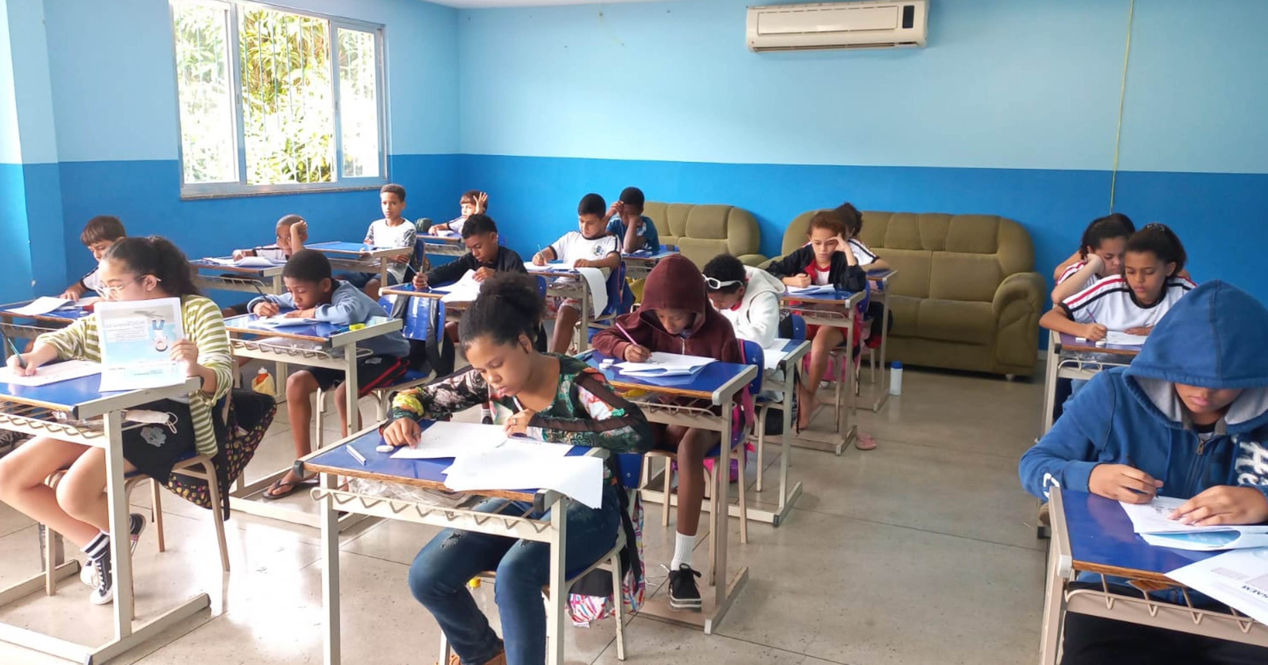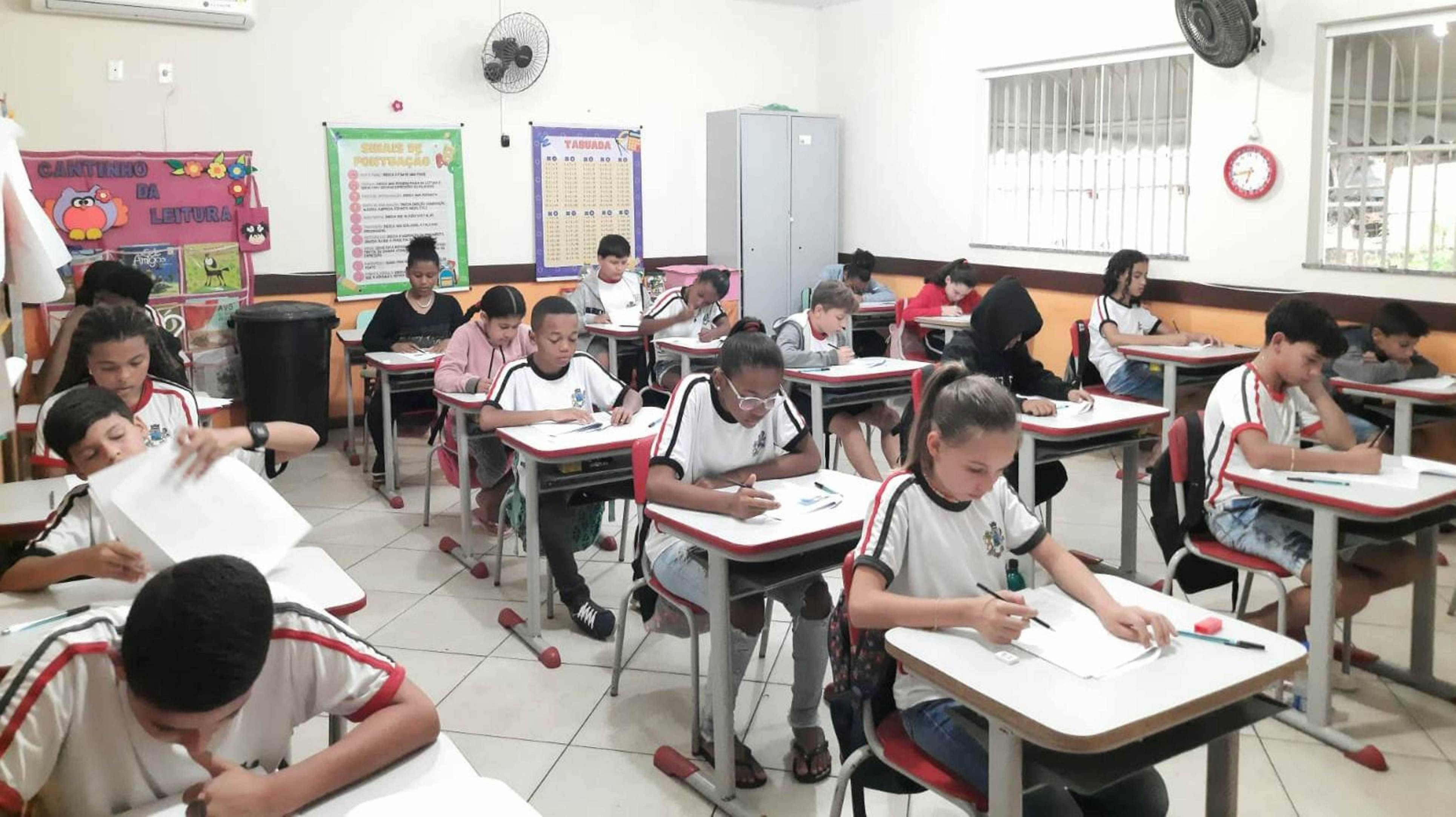 Estudantes concentrados numa das turmas que foram avaliadas pelo SAEM (Sistema de Avaliação das Escolas Municipais)