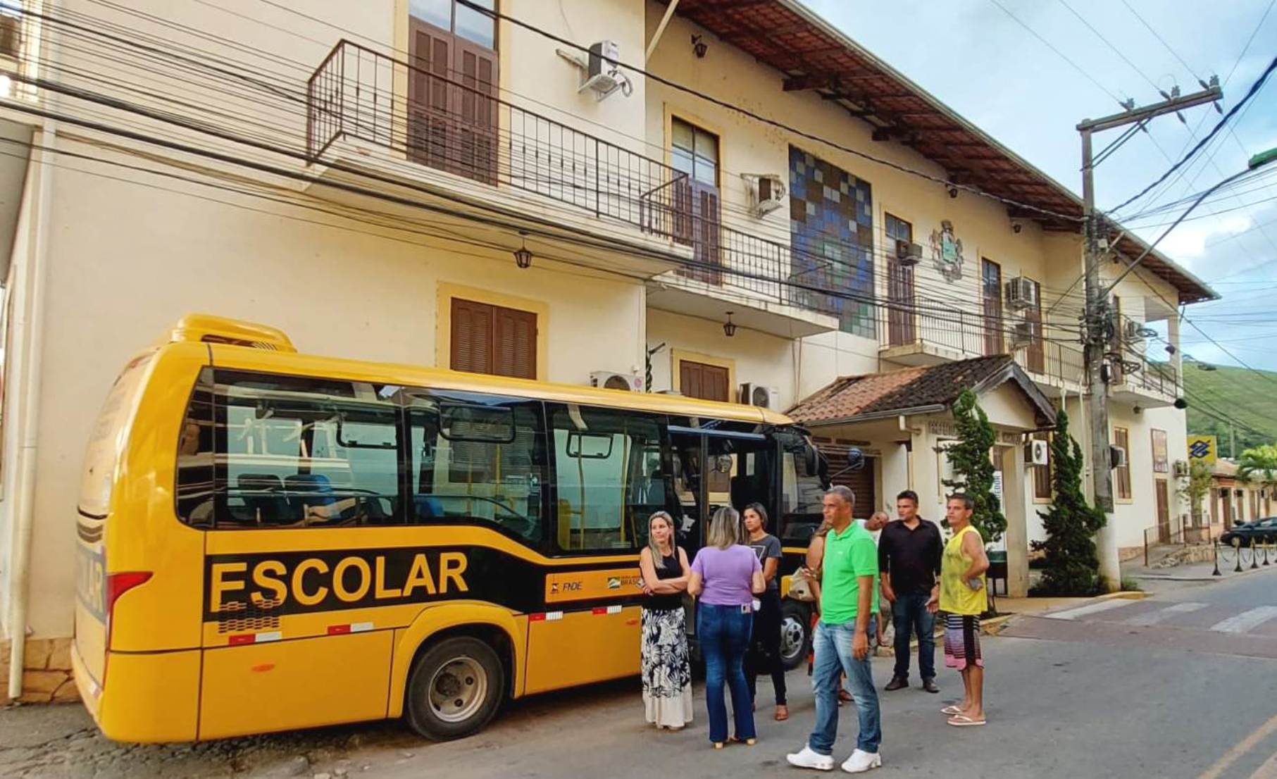 Novo veículo para transportar os estudantes ficou exposto na frente da sede do Governo Municipal para a apreciação popular
