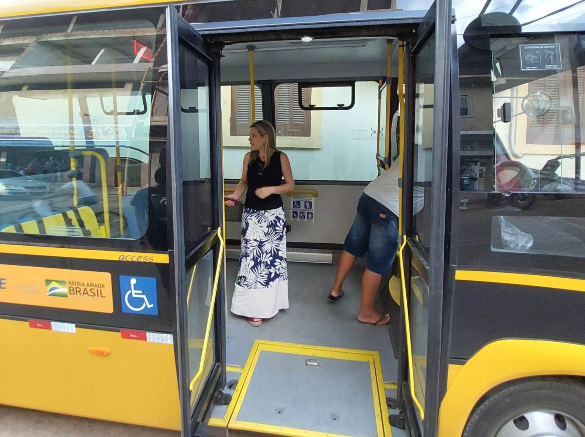 Michelle Bianchini conferiu os detalhes e se certificou dos itens de segurança do ônibus, que também atende alunos com necessidades especiais
