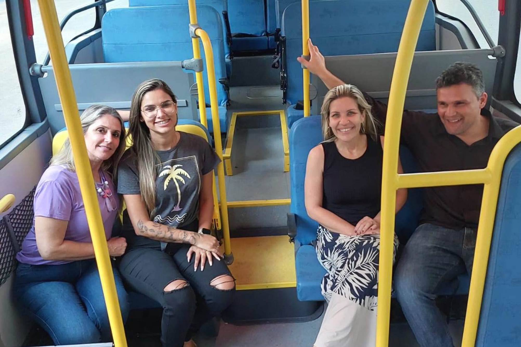 Na quinta-feira, dia 19 de janeiro, a prefeita Michelle Bianchini, os secretários de Governo e Educação, João Vitor Pontes e Claudia Vogas, respectivamente, além da professora Marcelle Golinelli, que integra a equipe pedagógica municipal, puderam conhecer melhor a estrutura do novo ônibus escolar que comporá a Frota Municipal. Adquirido através do programa ‘Caminho da Escola’, mantido pelo Governo Federal, o veículo atende ao planejamento do Fundo Nacional de Desenvolvimento da Educação.