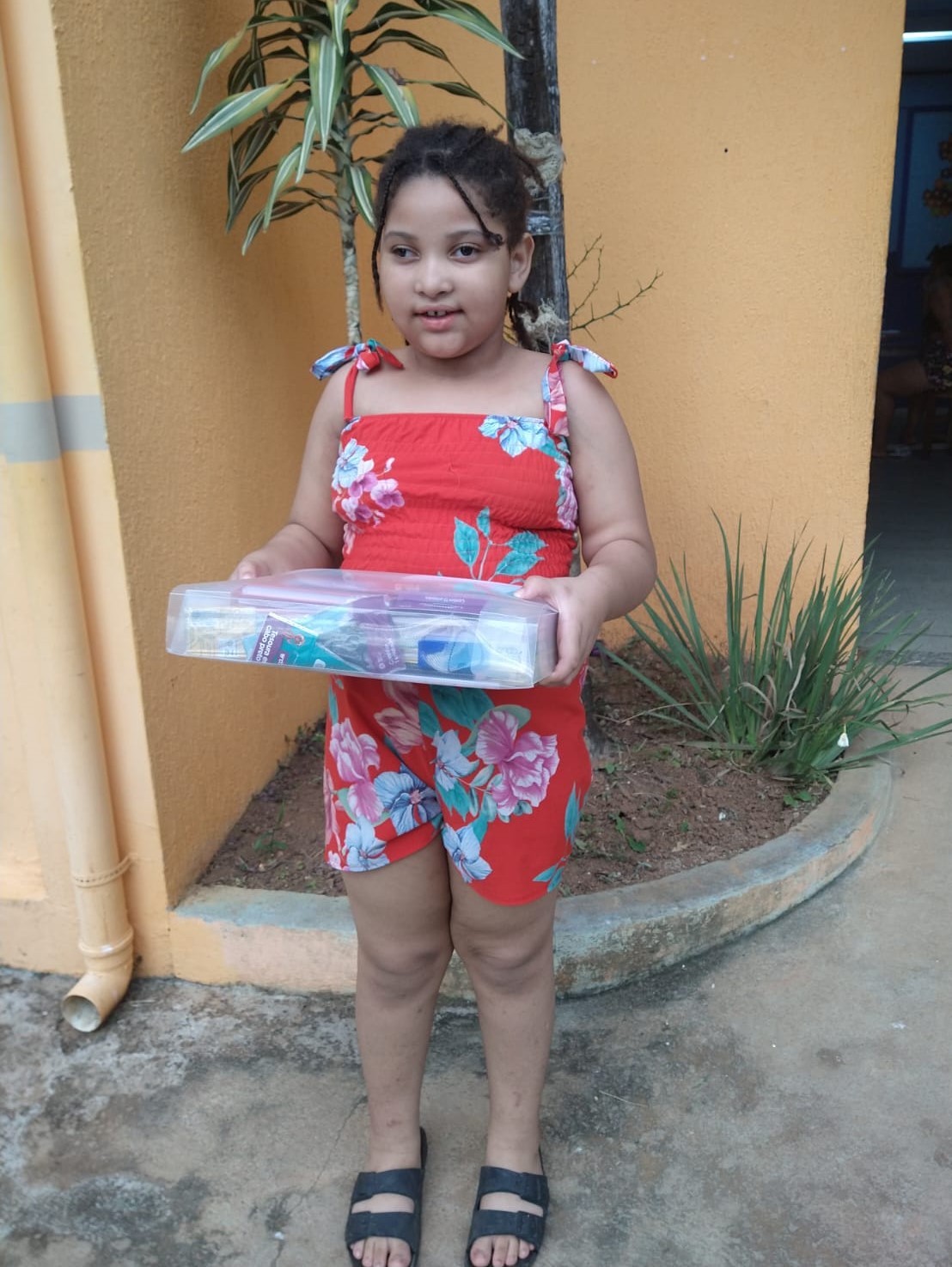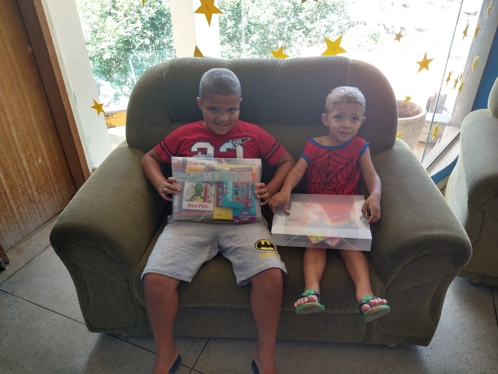 No aconchego do lar, os pequenos estudantes comemoram o recebimento do Kit Escolar que será companheiro o ano todo
