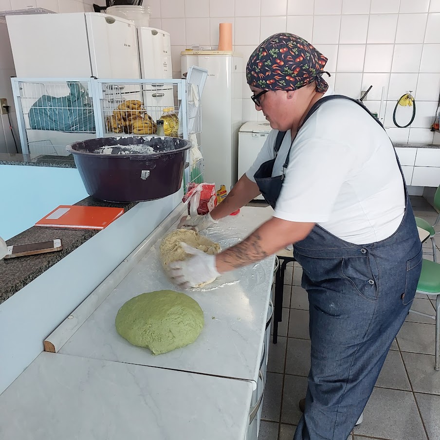 Hora e vez de fazer a mistura mágica que se transformaria nas delícias para a merenda dos pequeninos estudantes