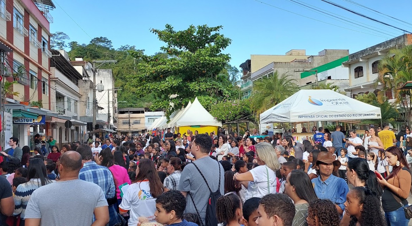 Centenas de pessoas na praça principal de Macuco mostrando que a FLIMAC 2023 já se consolidou como sucesso