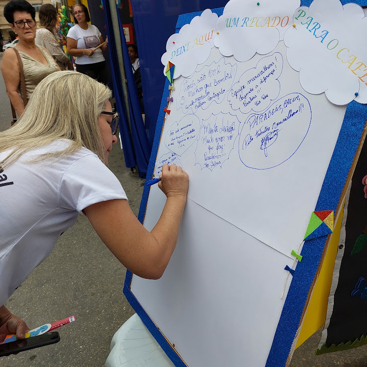 Prefeita Michelle Bianchini deixa sua mensagem no cartaz estrategicamente posicionado pelos profissionais do CAEEM