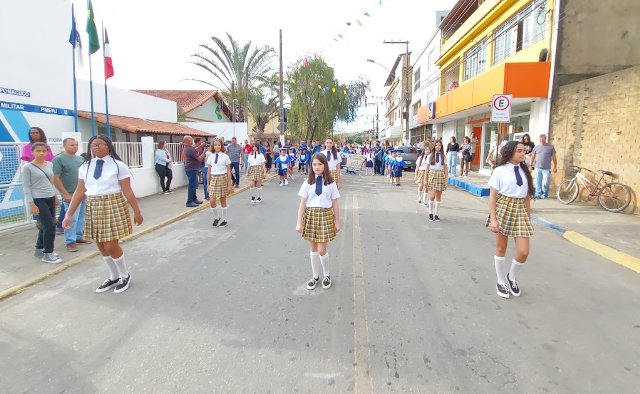 A Guarda Mirim Ambiental, comandada por Raul Carapeba, deu início ao desfile, seguida pelo Pelotão de Bandeiras, que apresentou as bandeiras do Brasil, do Estado do Rio de Janeiro, do Município de Macuco e dos 26 estados da federação. A passagem dos pelotões foi acompanhada pelo som de quatro agremiações musicais: Banda Marcial José Carlos Boaretto, regida por Luiz Carlos Abi-Ramia; Banda Marcial Juliano Lopes, sob a batuta de Zé da Banda; Banda Marcial do Instituto Educacional Laura Montechiari, comandada por João da Rocha Ferreira; e Banda do Colégio Estadual Farmacêutico Rodolfo Albino, conduzida por Isaac Gomes.