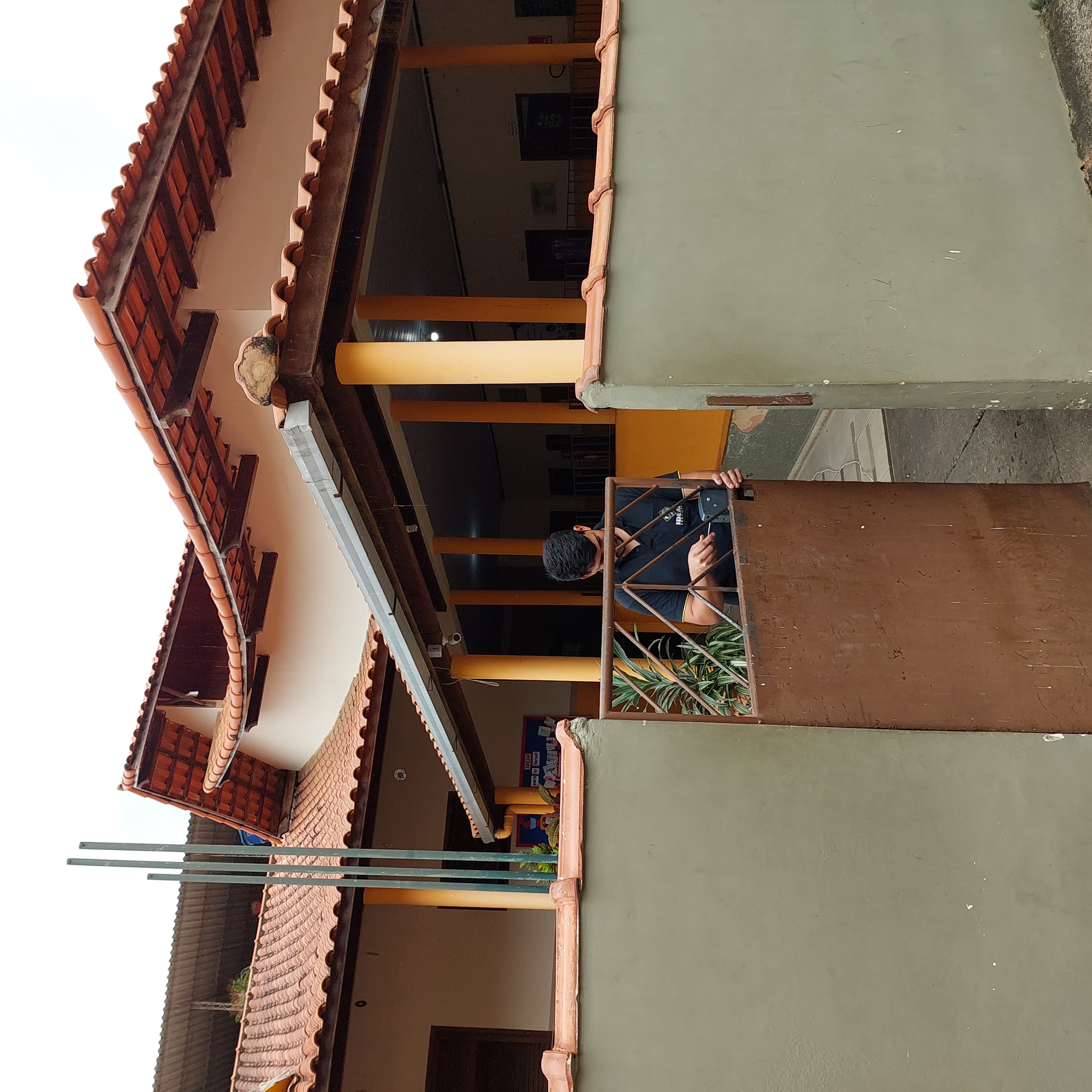Representante da empresa ajeitando os últimos detalhes para o funcionamento da câmera na Escola David Coelho