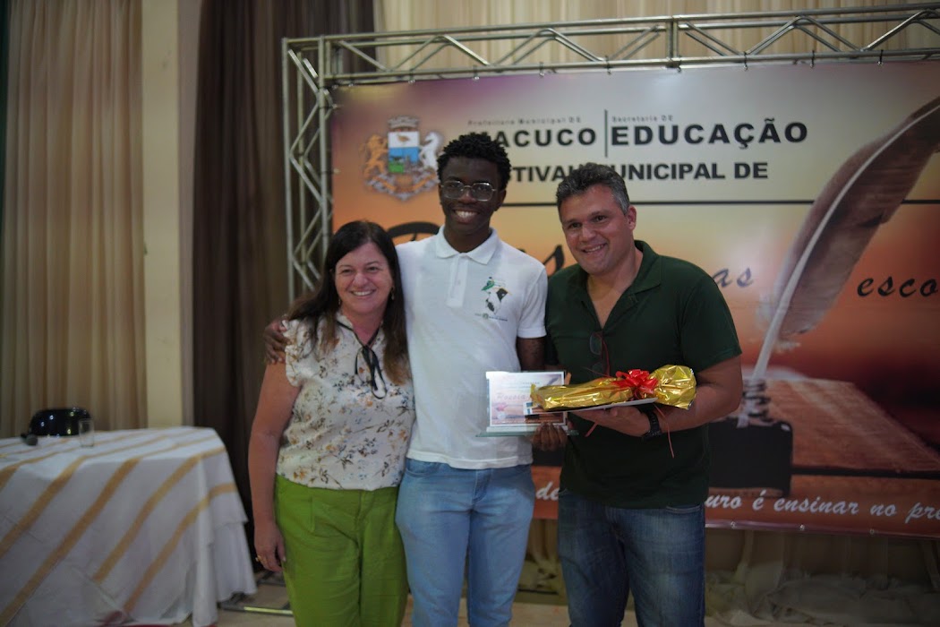 Premiação entregue pelo secretário de Governo e Gestão de Macuco, João Vitor Pontes, que teceu elogios à qualidade dos poemas apresentados