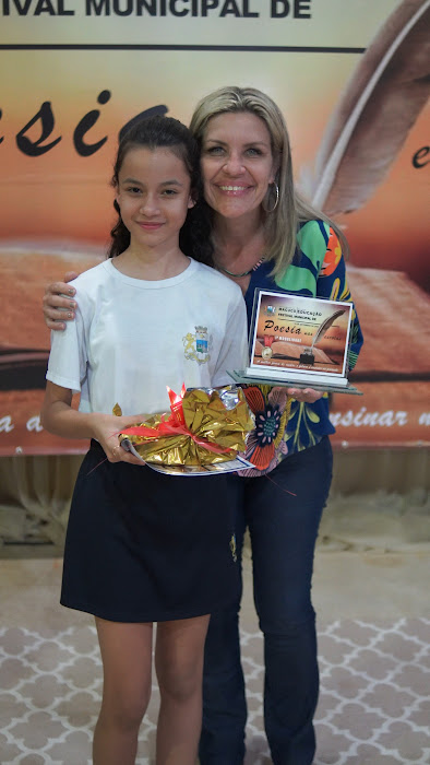 Para os professores municipais, não poderia ser maior a satisfação de constatar o sucesso de uma das alunas de sua escola no Festival de Poesia