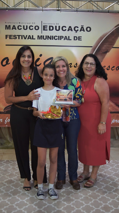 As escolas representadas no evento foram CIEP Municipalizado Honório Peçanha, David Coelho dos Santos e Sylvia Bath Rosas (municipais); José Carlos Boaretto (estadual); e Instituto Educacional Laura Montechiari (Balão Mágico), da rede particular. Em duas categorias, os grandes vencedores – que irão representar Macuco no Festival Intermunicipal de Aperibé, em 10/11 – que mantiveram a tradição de celebrar o talento literário e a criatividade dos jovens poetas de Macuco foram os seguintes: