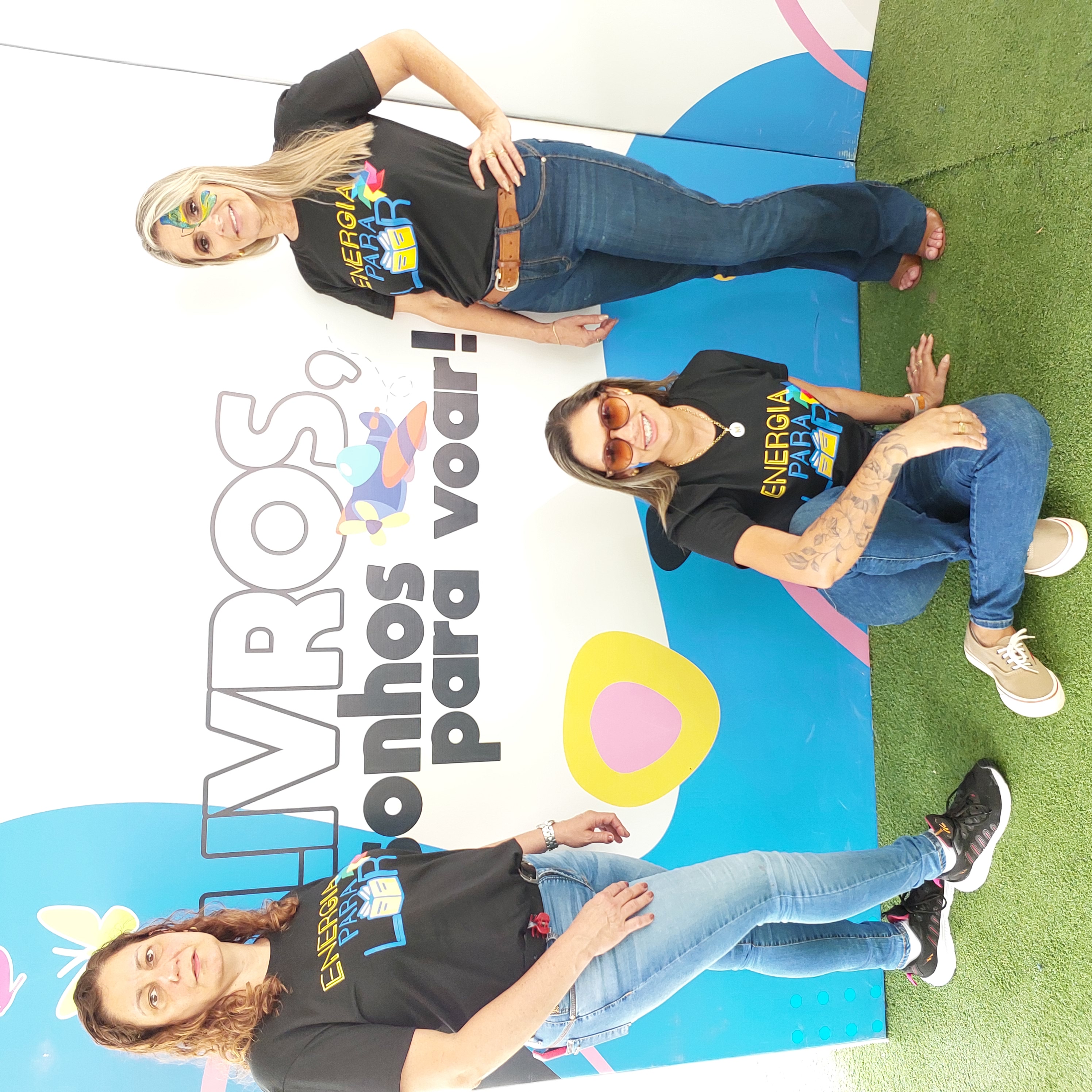 Secretária de Educação Claudia Vogas (à direita) ao lado de Marcelle Vollu e Silvania Biscacio, de sua equipe pedagógica
