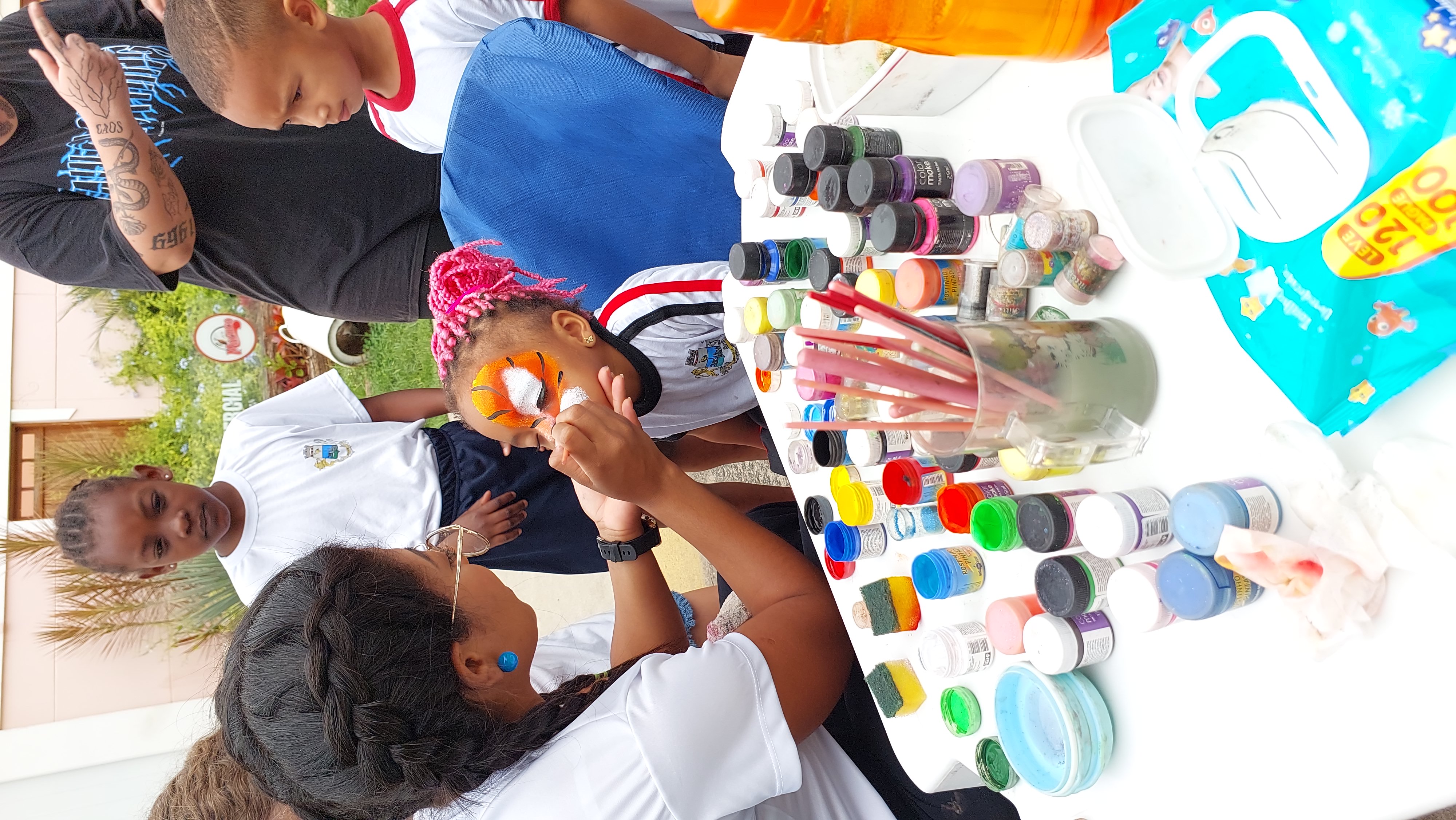 A garotada ganhou pinturas para se aclimatar ainda mais com o evento, que deixou as crianças animadas