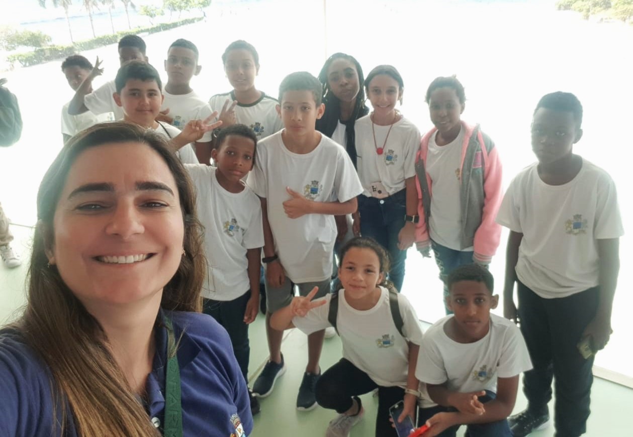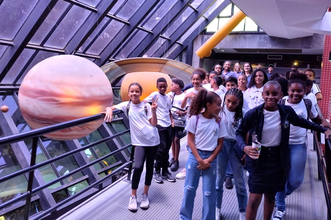 Mais um momento de empolgação para os estudantes da Escola David Coelho dos Santos num dos museus visitados no Rio de Janeiro