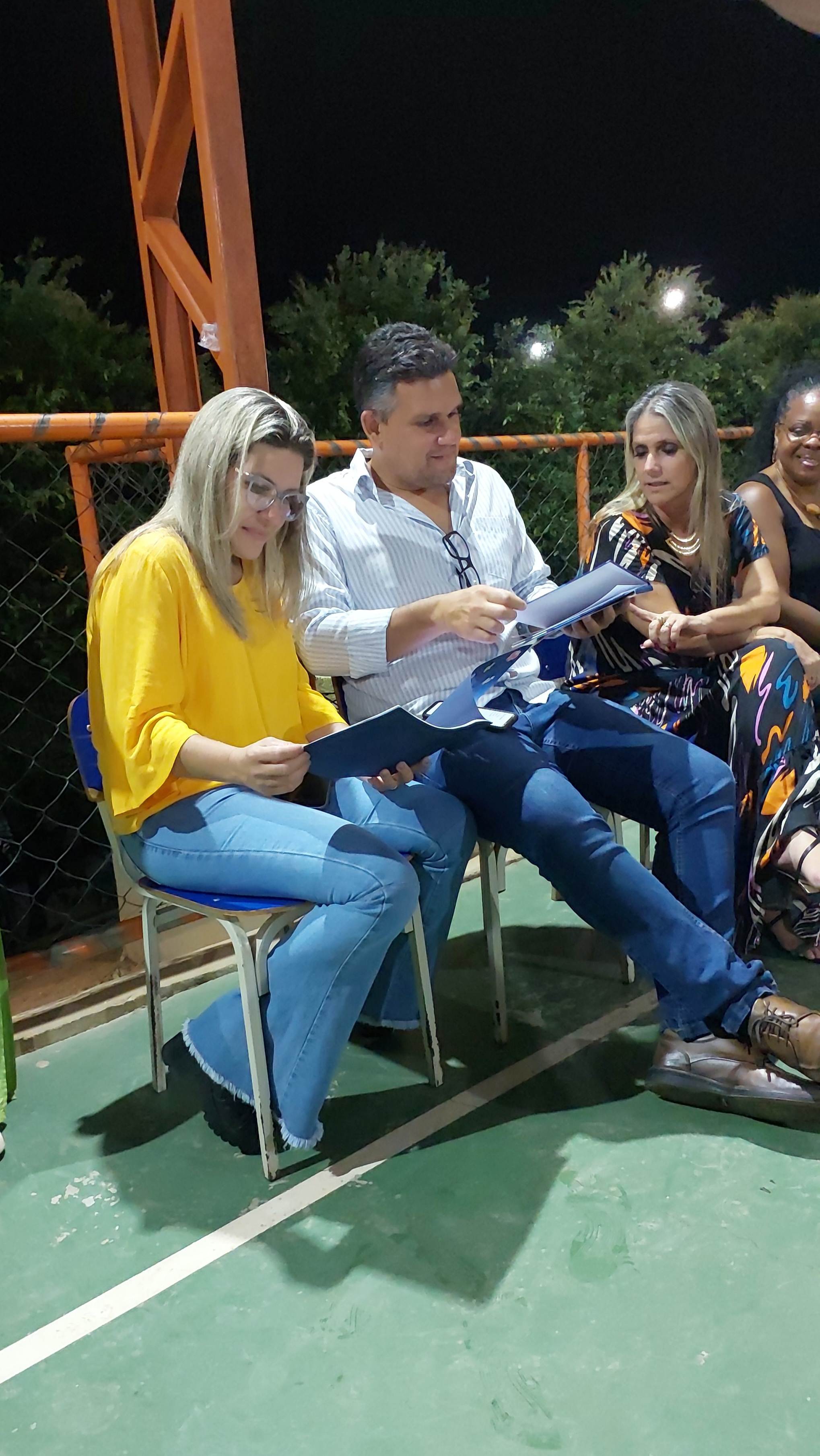 Representantes da Escola David Coelho dos Santos receberam a prefeita e o secretário de Governo durante a Noite de Autógrafos
