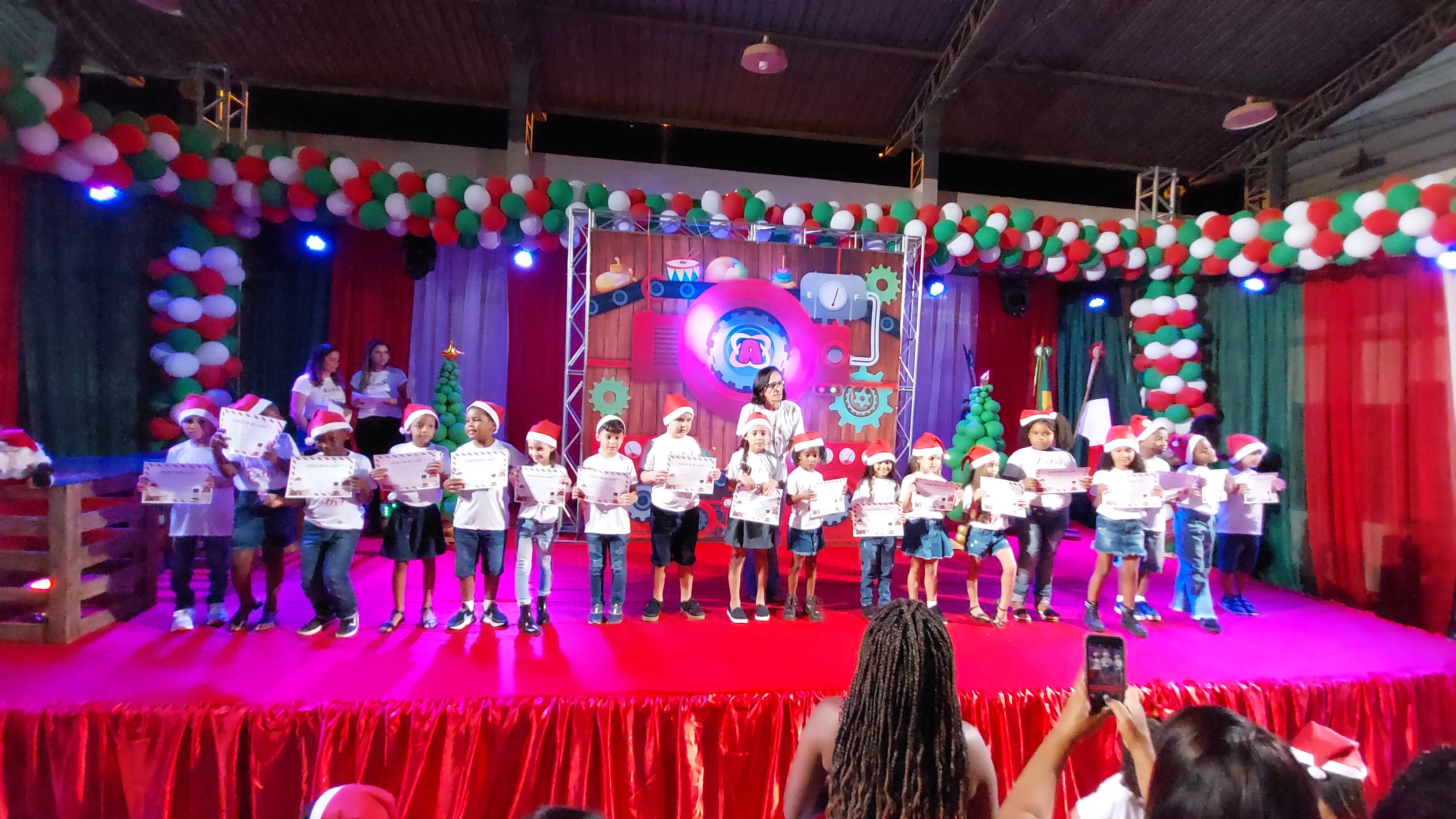 Nesta terça-feira, 12 de dezembro, os profissionais da educação macuquense vibraram com a conquista de mais uma fase importante do aprendizado de crianças e jovens, que ofereceu à comunidade local mais uma noite repleta de emoção. Uma belíssima festa, realizada no Auditório Francisco Dornelles, no Macuco Rural Park, marcou a conclusão de mais uma etapa essencial na vida dos estudantes da Rede Municipal de Ensino, dessa vez envolvendo as turmas da Educação Infantil.