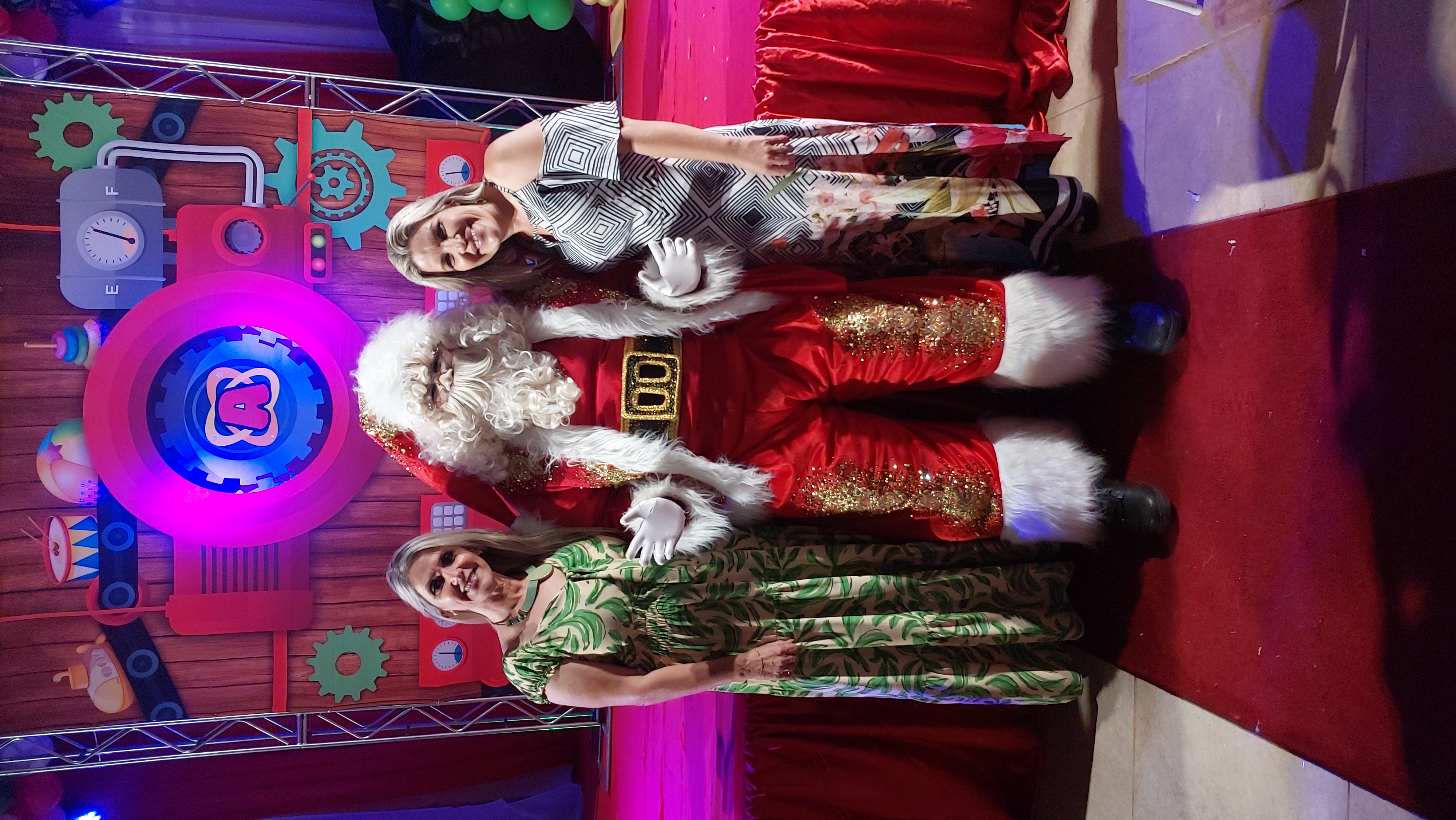 Claudia Vogas e Michelle Bianchini entraram no clima natalino, aderiram ao momento e posaram ao lado do Papai Noel