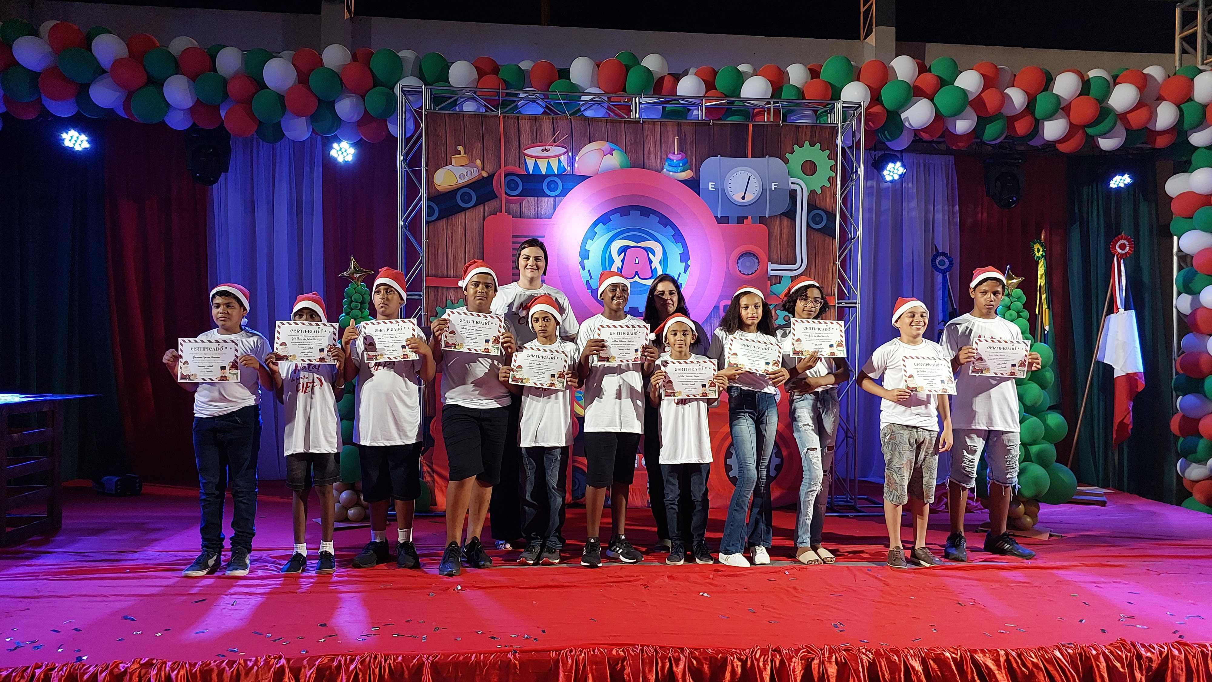 Pela terceira noite seguida, as apaixonantes performances das turmas de formandos antecederam à entrega de certificados e o juramento dos alunos. Da mesma forma que na noite anterior, a atmosfera mágica, repleta de esperança e animação natalina, foi vividamente encenada no palco. Os artistas do grupo Agitação, com maestria, exibiram habilidade e profunda conexão com a dramaturgia, apresentando momentos que mesclaram diversão e reflexão, culminando em uma noite festiva memorável.