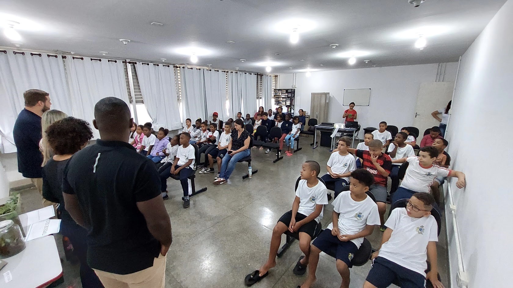 Numa ação que mobilizou estudantes do 3° Ano do Ensino Fundamental, alunos das escolas CIEP Honório Peçanha, David Coelho e Sylvia Bath Rosas, a interação foi um dos pontos que chamaram a atenção, a começar pela abertura, feita pela secretária de Educação, professora Claudia Vogas, que na sequência anunciou a palestra propriamente dita, coordenada pelo secretário de Meio Ambiente, o ambientalista Firmo Daflon, e sua equipe, formada por André Jardim, diretor de Fiscalização, e Leila Brito, bióloga.