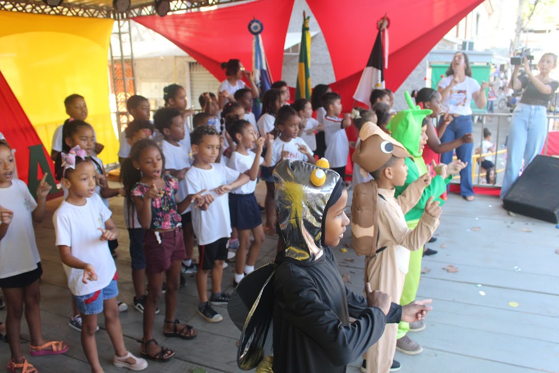 A criançada dos educandários municipais mais uma vez subiu ao palco para fazer suas apresentações