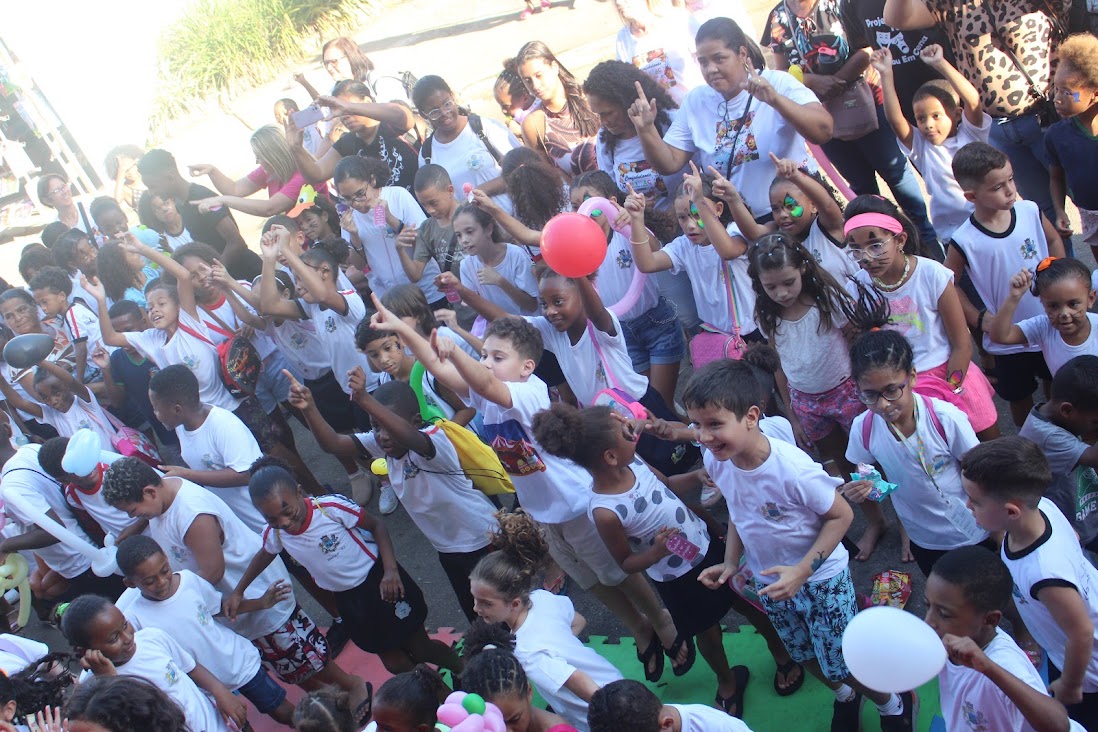 Carismático e divertido, o Palhaço Tatá chamou os estudantes para brincar com ele e a plateia delirou