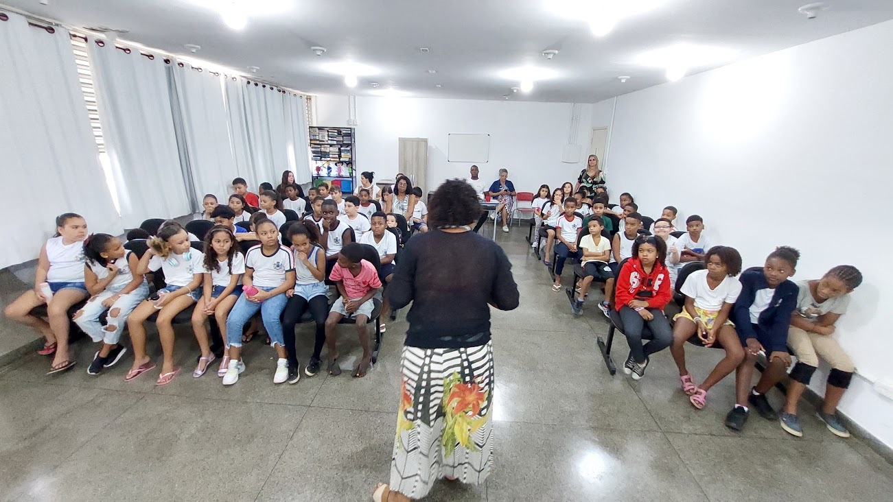 Autoridades, alunos, professoras e orientadoras pedagógicas assistiram à palestra ministrada pela bióloga Leila Brito