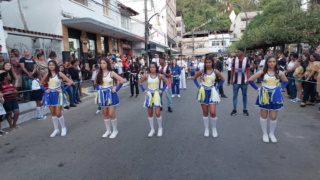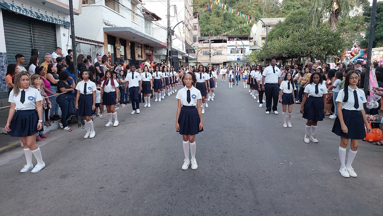 Parte integrante da programação em comemoração à semana do padroeiro macuquense, São João Batista, a passagem das instituições pela passarela teve início com a Guarda Mirim Municipal. Na sequência, vieram as bandas marciais do CIEP/511 de Monnerat, em Duas Barras, Escola Zuleika Judice de Matos Rodrigues, de Cordeiro, e ainda a Banda de Tambores do Colégio Canadá, atração de Nova Friburgo, convidadas de honra que abrilhantaram o atrativo desfile. Não poderiam faltar as bandas Juliano Lopes de Souza, CEFRA, IELM e José Carlos Boaretto. Em meio às apresentações, o pároco Fernando Pacheco, da Paróquia de São João Batista, falou sobre os festejos, orou pelos estudantes e mestres e abençoou o público presente.
