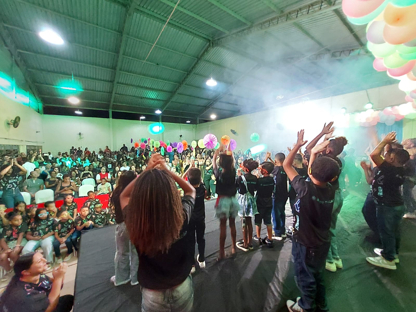 Durante as apresentações artísticas, foi total e empolgante a interação entre os estudantes e o público presente ao evento