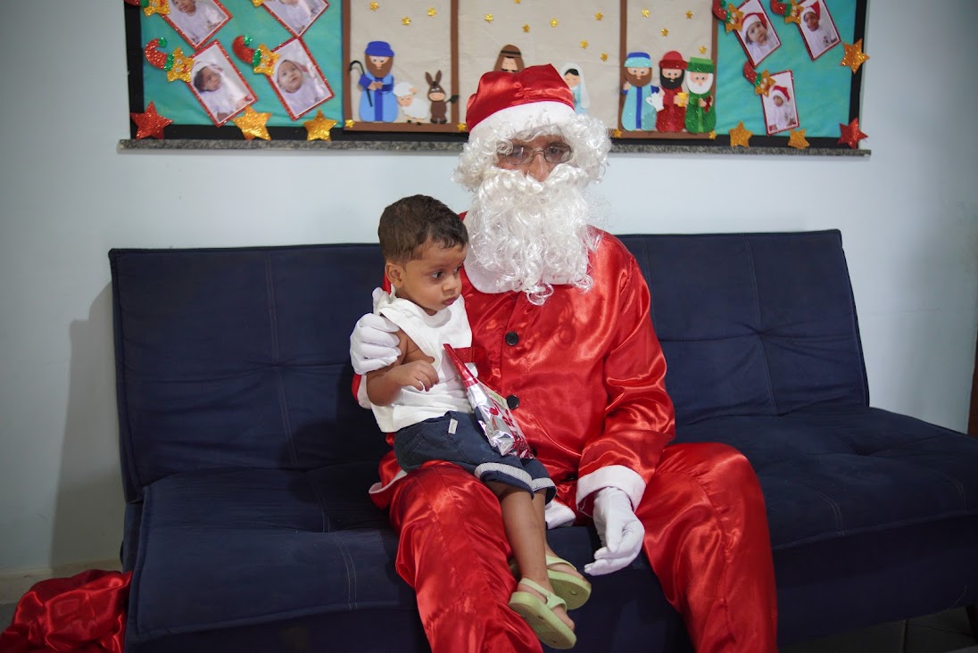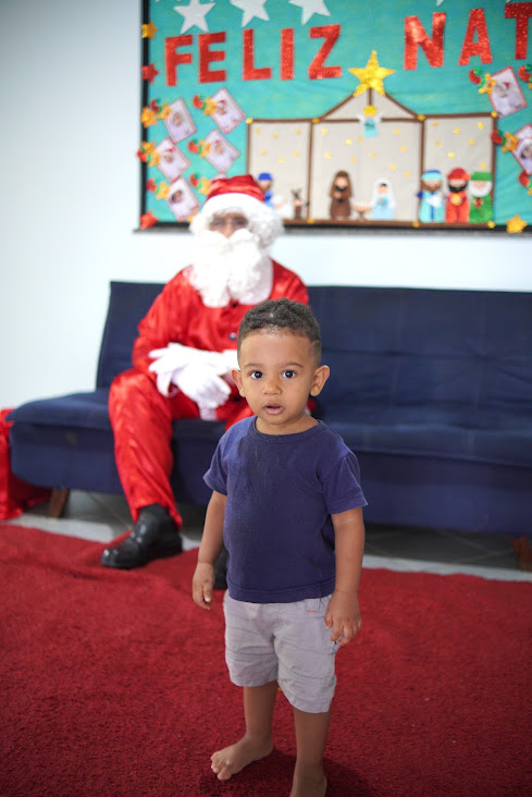 No aconchego do colo do Papai Noel, o pequeno estudante ganhou seu brinquedinho e descobriu a magia do Natal