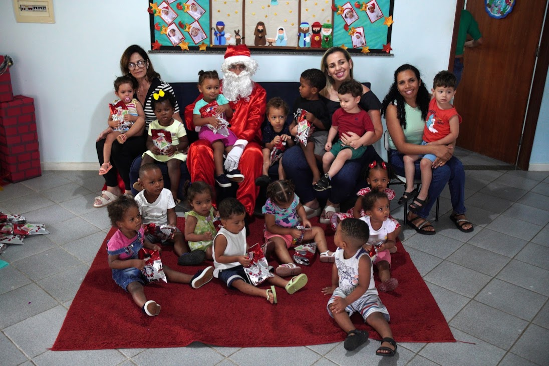 Carinho e receptividade marcaram o encontro do Papai Noel com as crianças que frequentam a Creche Municipal de Macuco