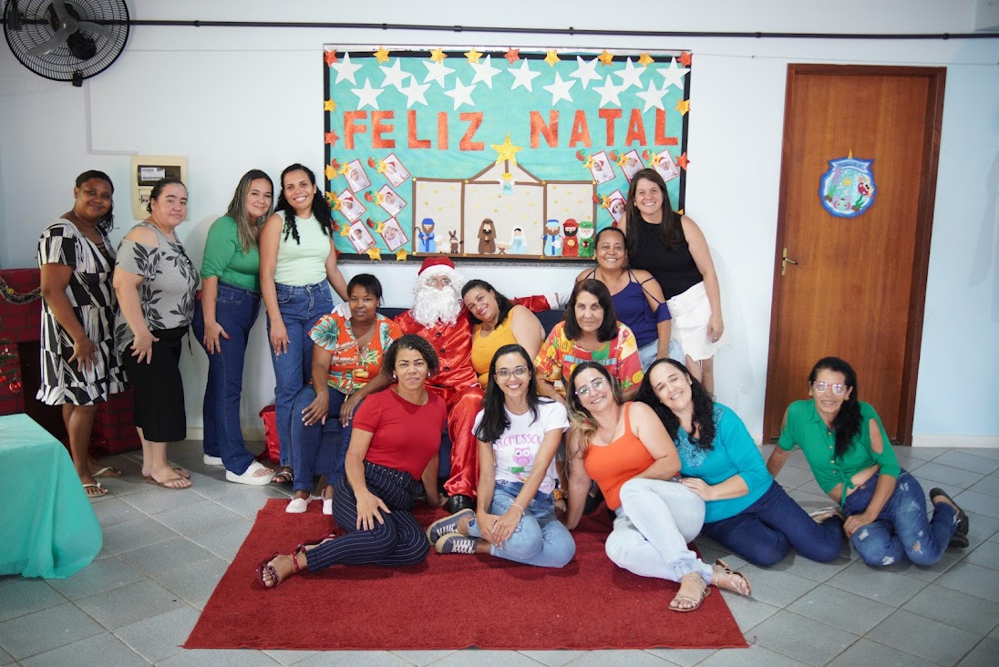Equipe de profissionais de educação da Creche Municipal Zilda Ribeiro Bianchini também se renderam à magia do Natal com o Bom Velhinho