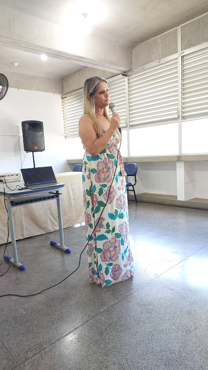 Momento em que a secretária de Educação apresentava a palestra a ser realizada pelo psicólogo e coordenador do CRAS Paraíso