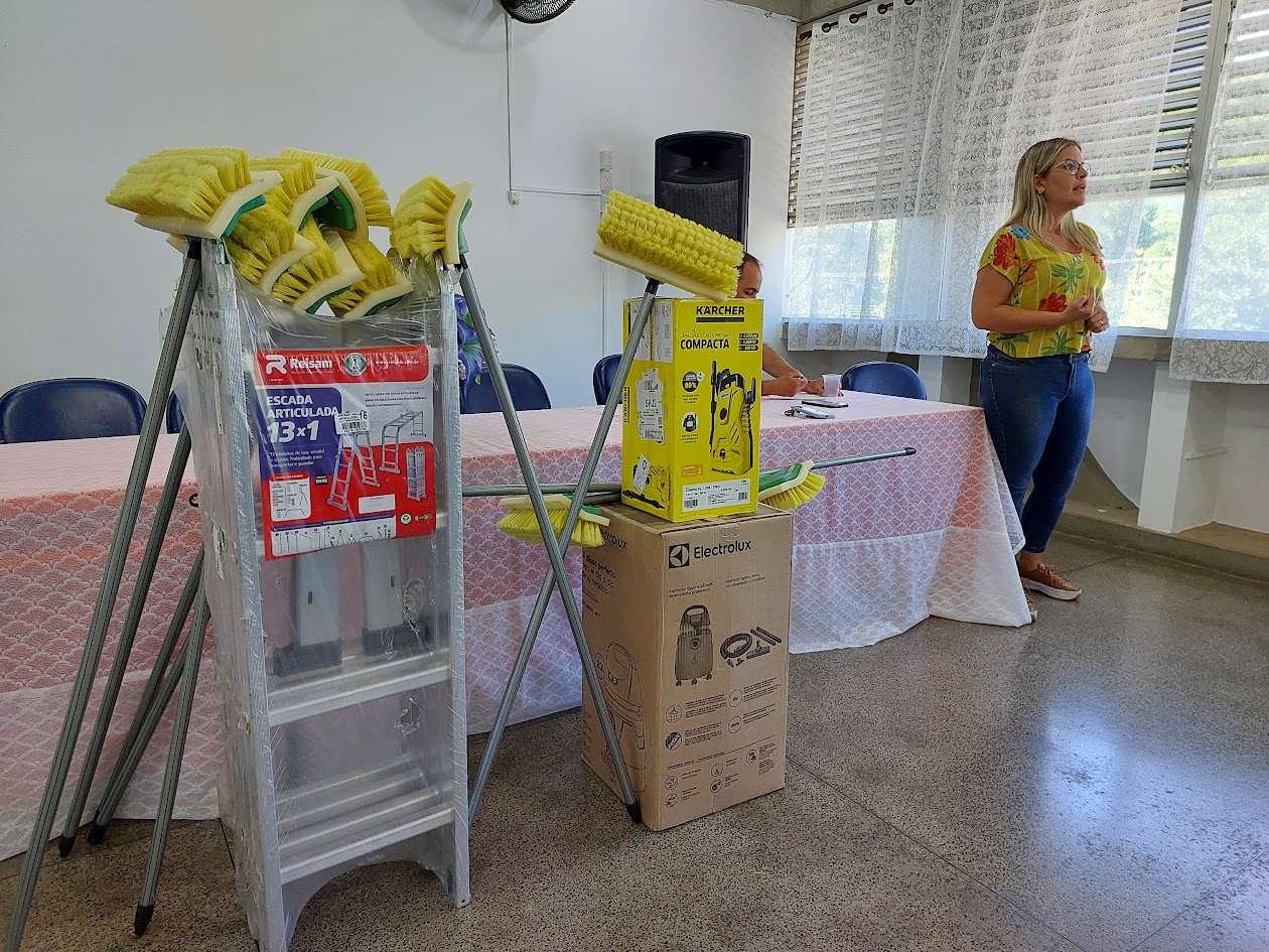 “Agradeço imensamente à prefeita por nos apoiar em mais essa iniciativa, onde a Gestão Municipal reforça sua preocupação com a infraestrutura educacional e a valorização dos trabalhadores do transporte escolar, promovendo um serviço mais seguro, eficiente e digno para toda a comunidade estudantil de Macuco”, disse a secretária. O kit entregue contém 10 vassouras apropriadas, uma máquina de lavar à jato, um aspirador de pó e uma escada específica para a realização dos serviços.
