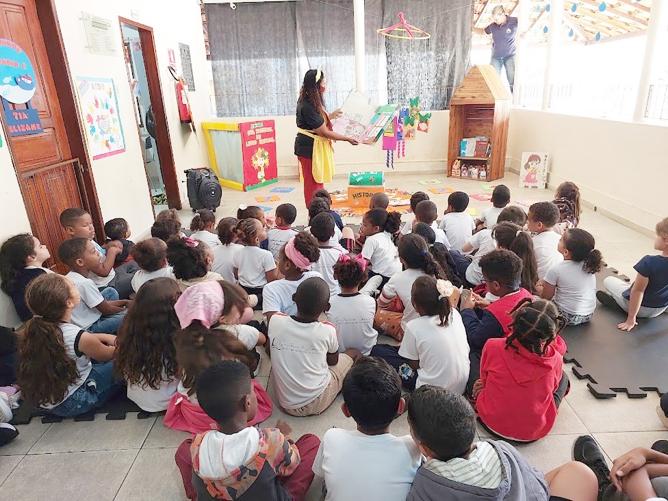Contação de histórias pelos profissionais de educação da Escola Sylvia Bath Rosas foi uma das atrações da programação