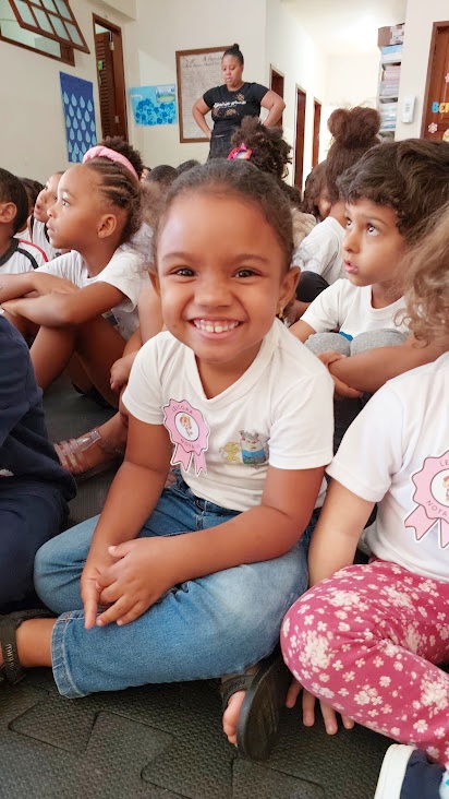 Mais uma das pequenas alunas que mostraram no sorriso a aprovação pelos momentos de felicidade que marcaram a celebração do Dia Nacional do Livro Infantil