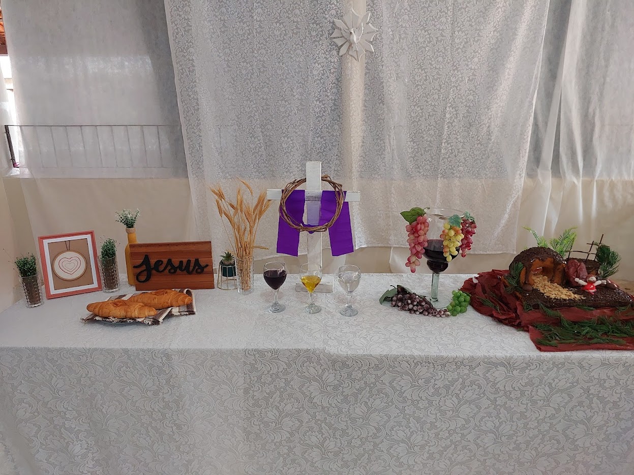 Ponto para a organização, que não poderia deixar faltar uma mesa ornamentada contendo toda a simbologia da Páscoa Cristã
