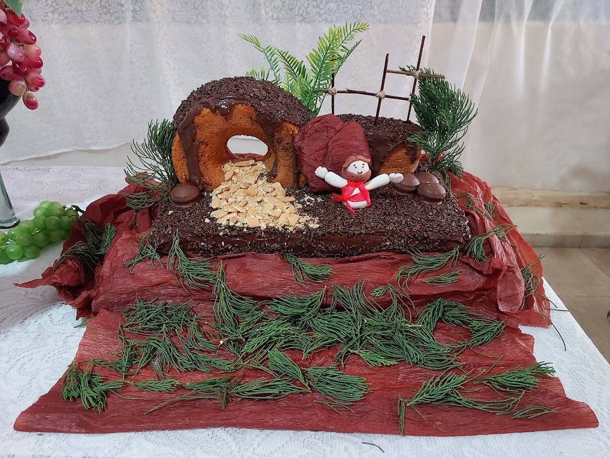 Até o bolo festivo continha uma decoração que lembrava a ressurreição de Jesus Cristo, ponto culminante da Páscoa Cristã