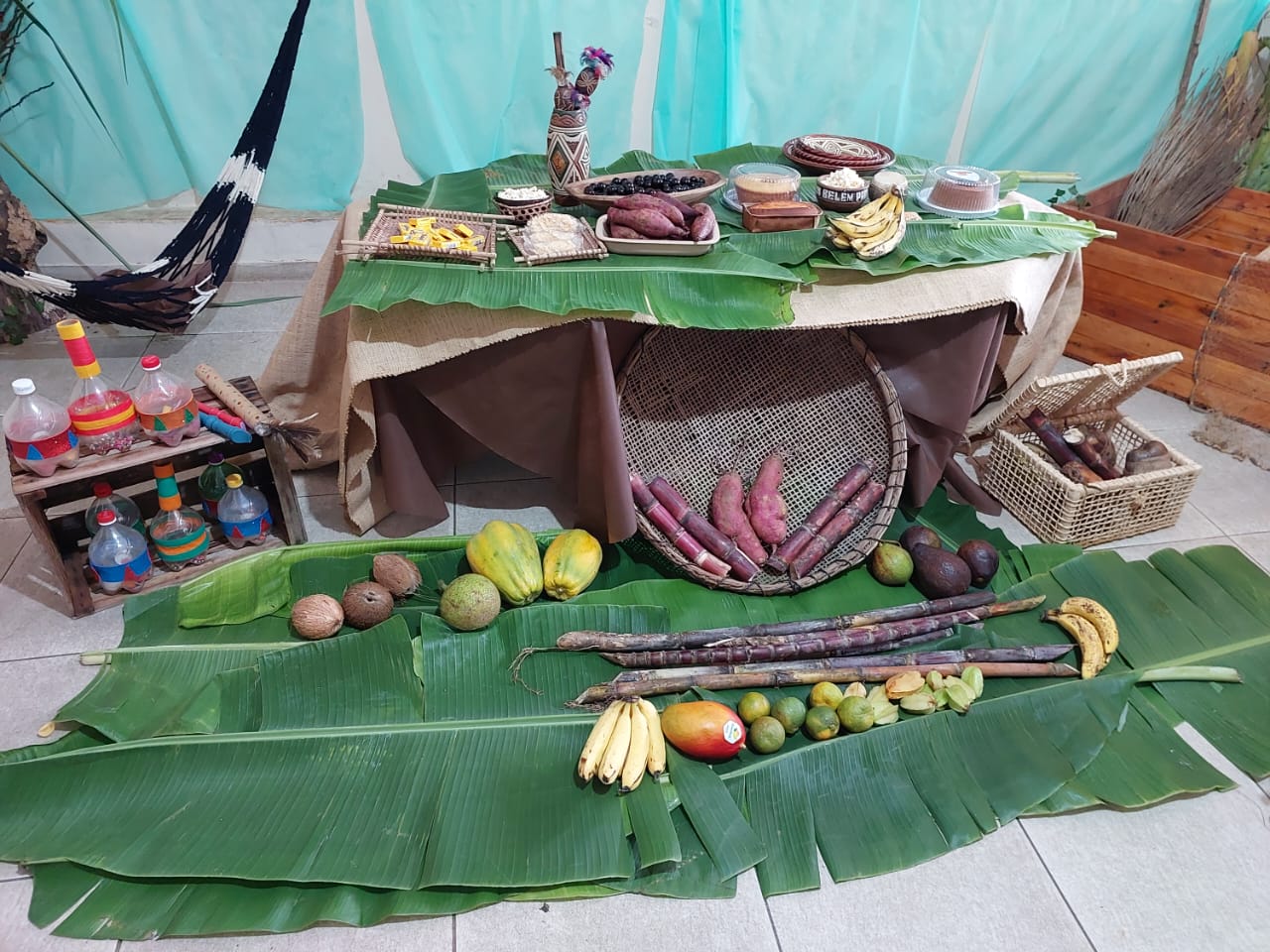 Instrumentos e alimentos típicos dos povos indígenas também compuseram o cenário apresentado durante as explanações