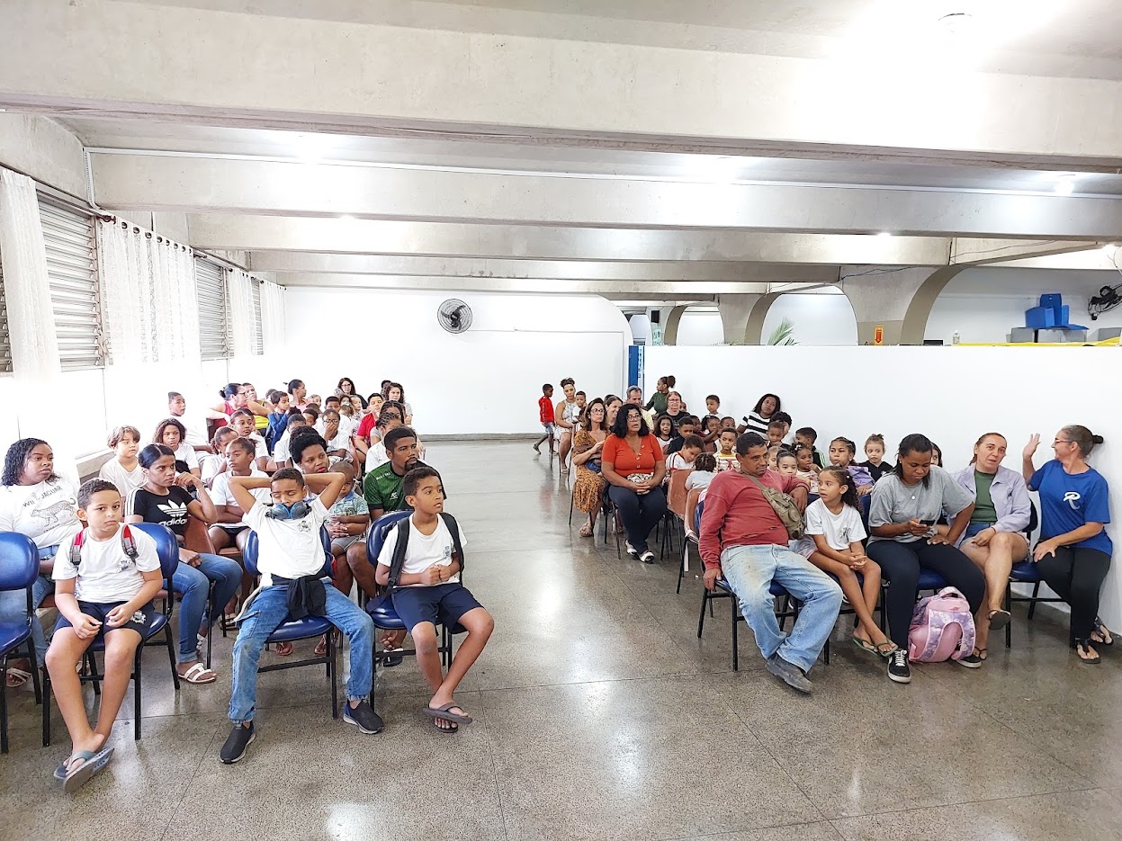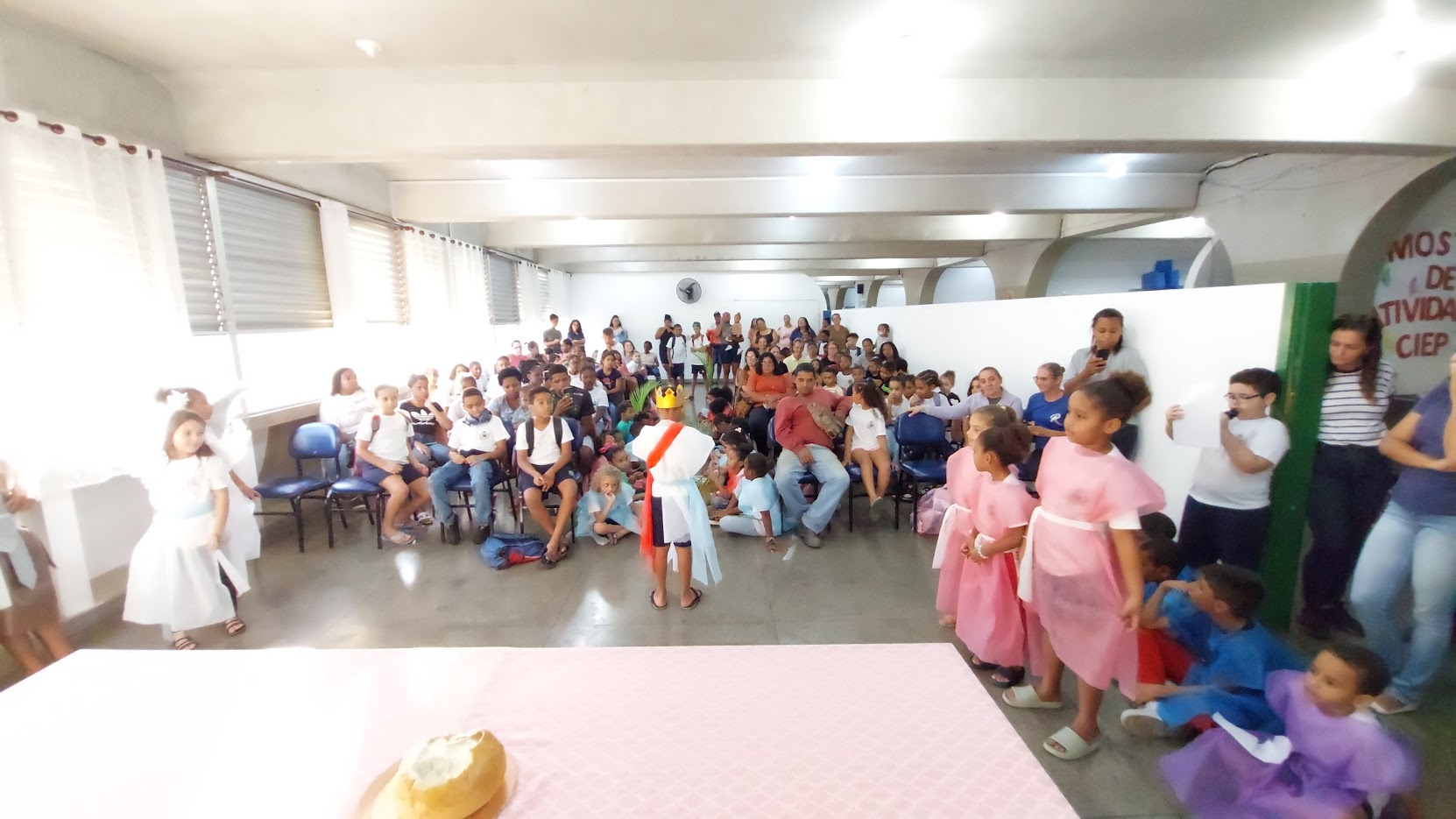 Familiares, convidados e alunos do educandário municipal se reuniram para acompanhar a encenação da peça teatral