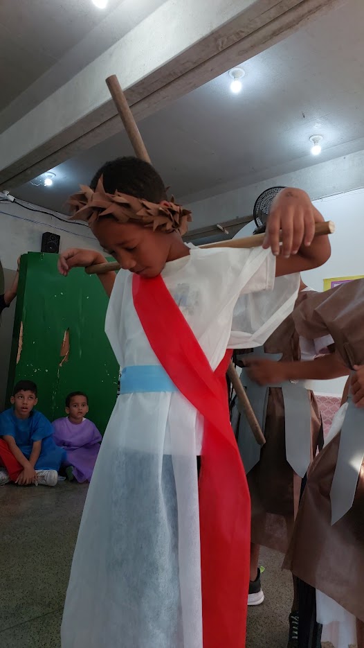 Não faltaram emoção e talento ao ator mirim na hora de vivenciar a Crucificação de Jesus Cristo durante a peça