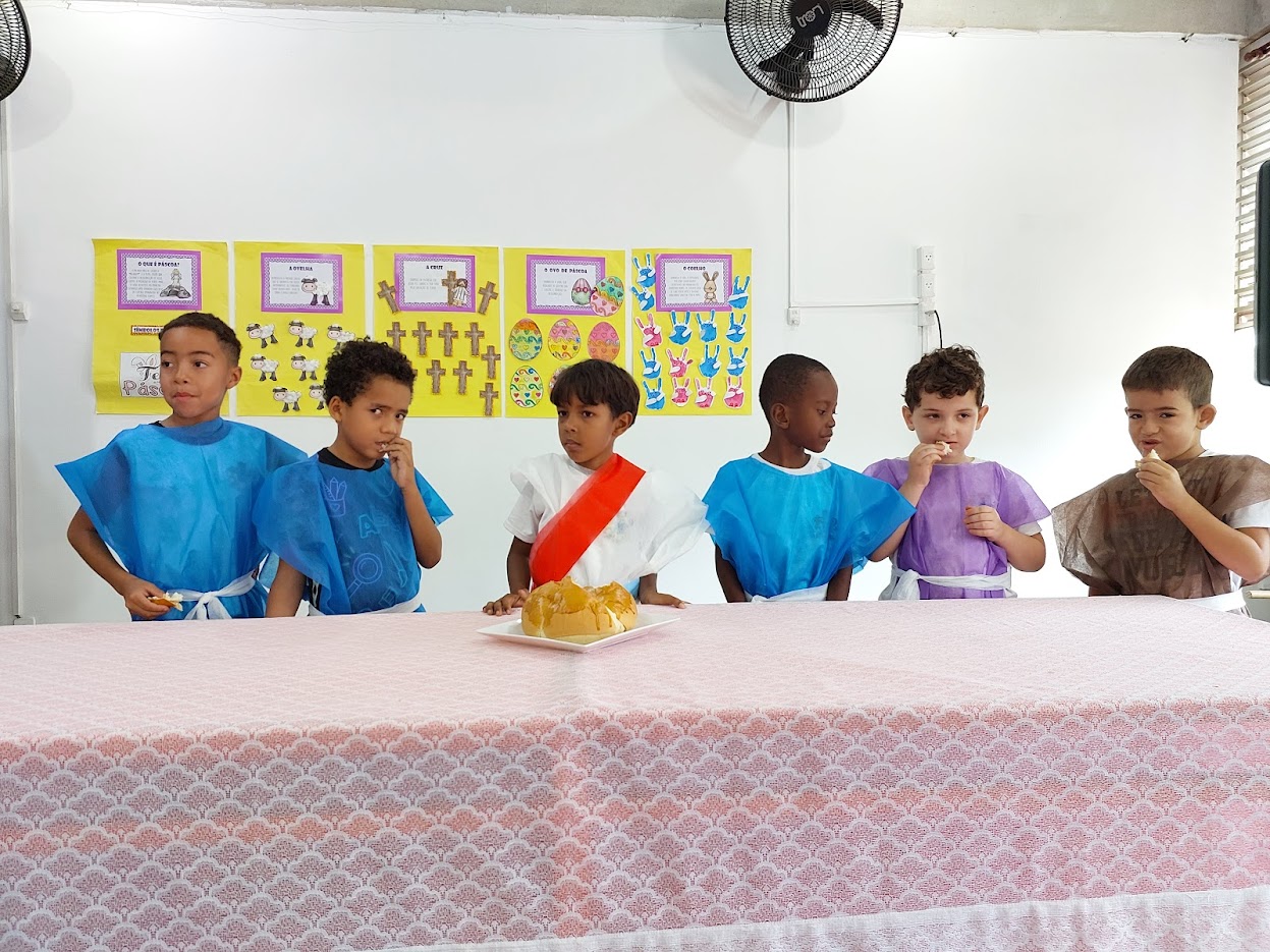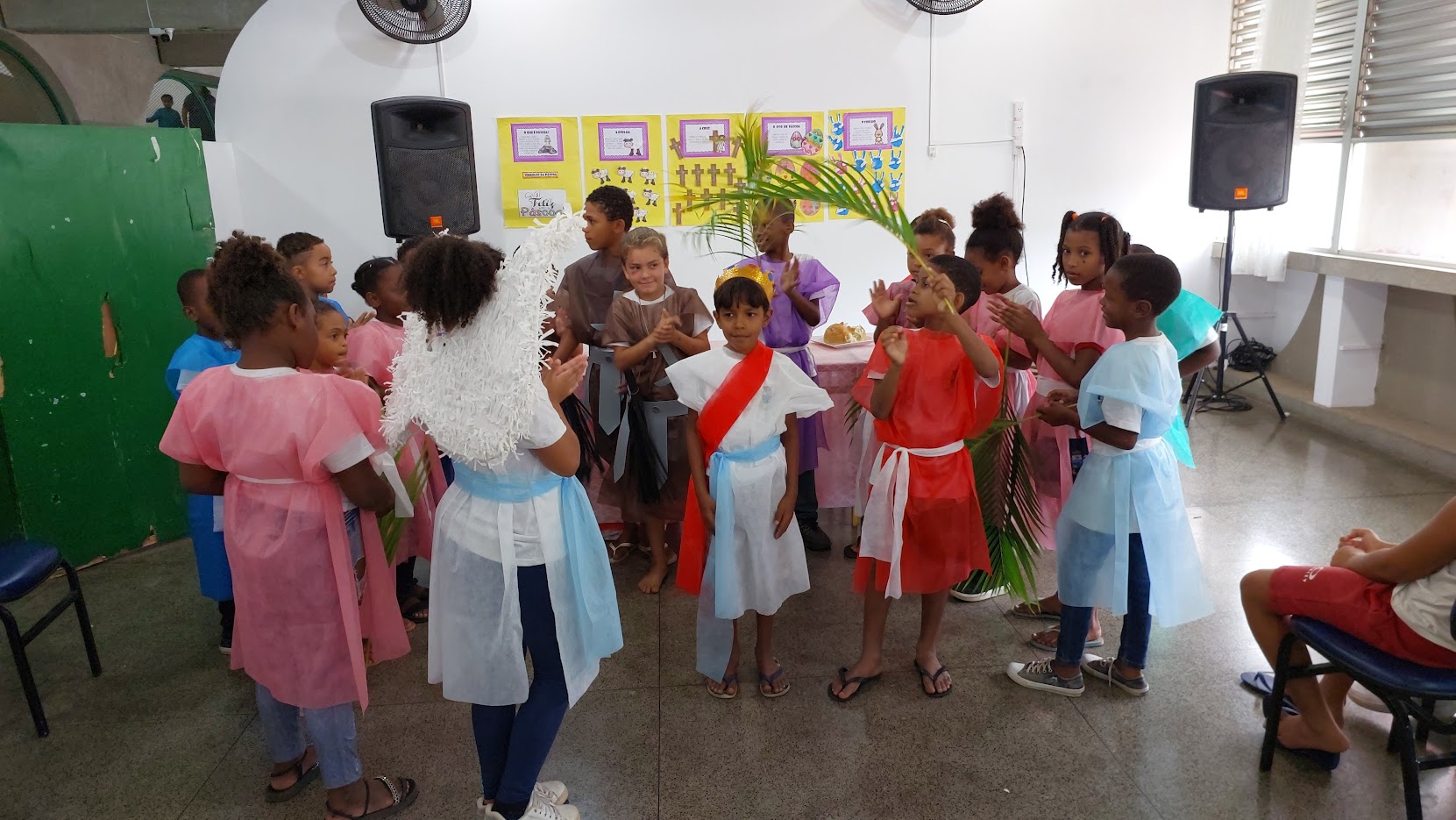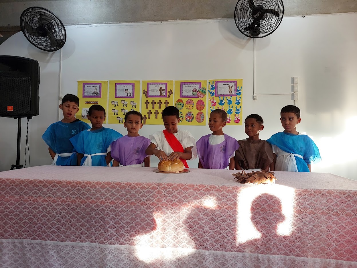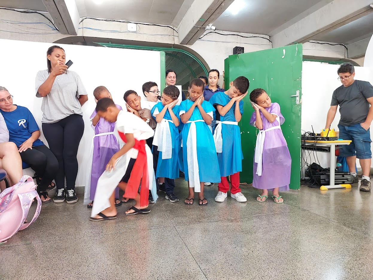 Estudantes do CIEP Honório Peçanha se mostraram integrados à proposta e ficaram felizes em encenar a peça da Páscoa