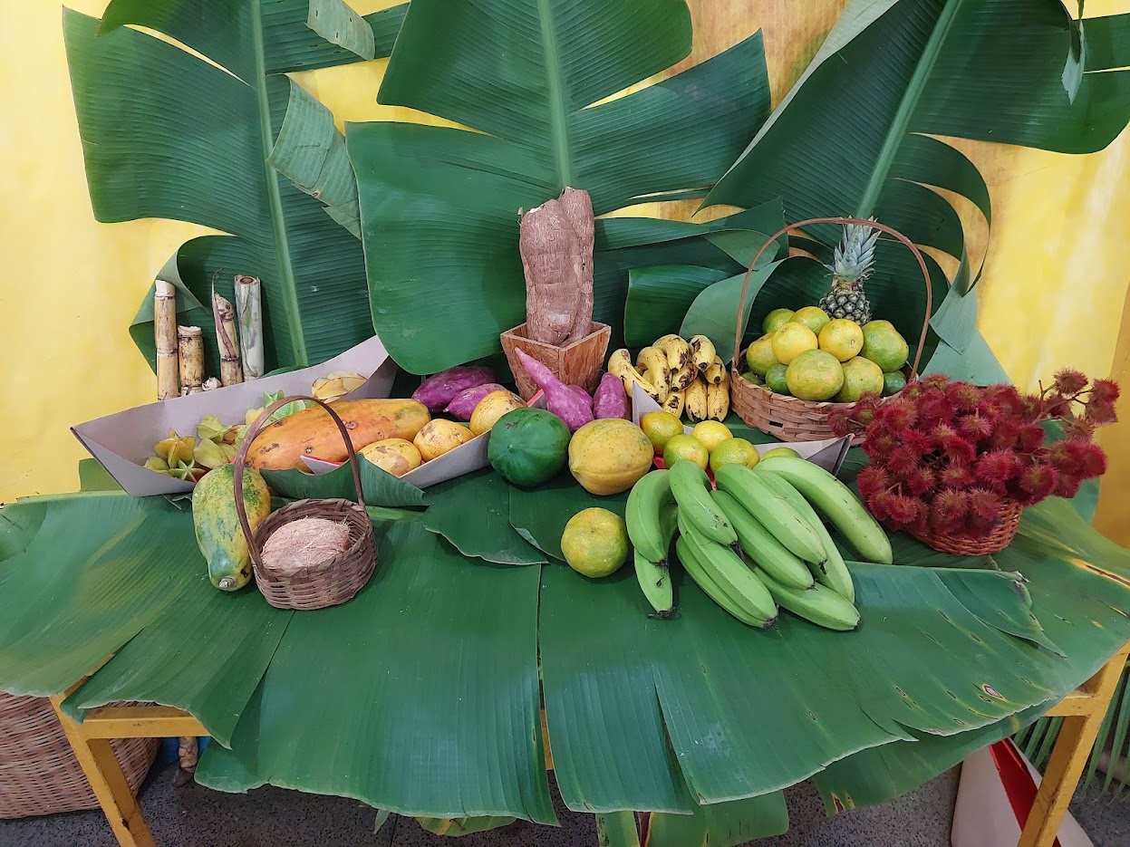 Uma mesa farta apresentando a típica alimentação dos povos indígenas também compôs o ambiente no CIEP Honório Peçanha
