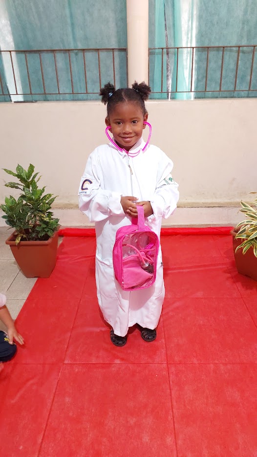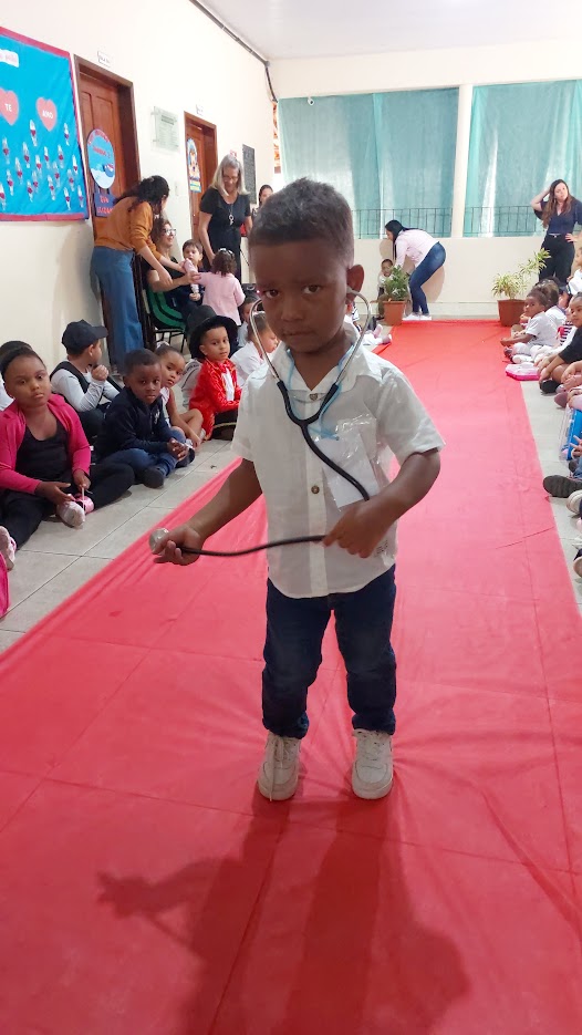 Como forma de homenagear os médicos, o pequeno aluno se vestiu de doutor para mostrar a importância dessa profissão