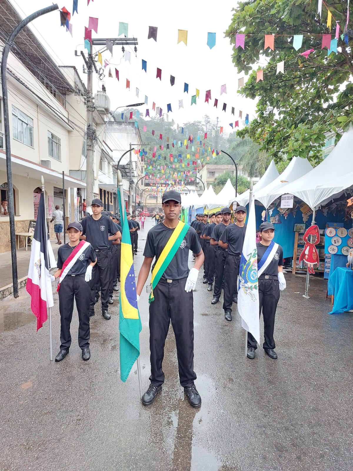 Guarda Mirim Municipal fez sua apresentação sob chuva fina e ainda assim empolgou o público com sua performance