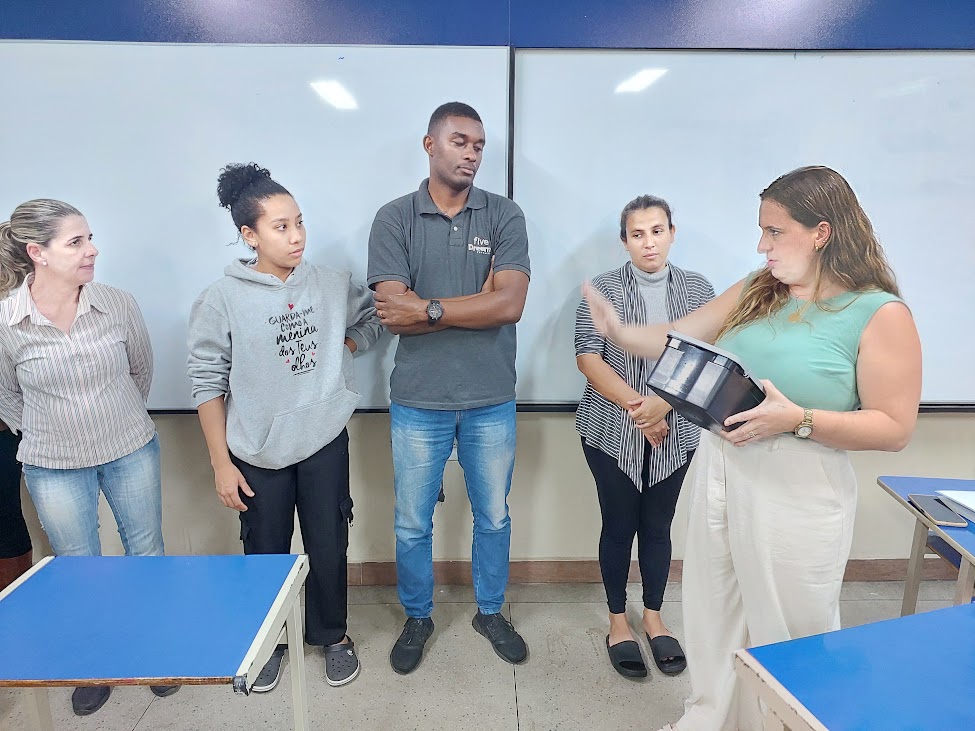 Uma das dinâmicas de grupo lideradas pela psicóloga Paula Reis impressionou os participantes pela simplicidade, mas que esbanjou criatividade