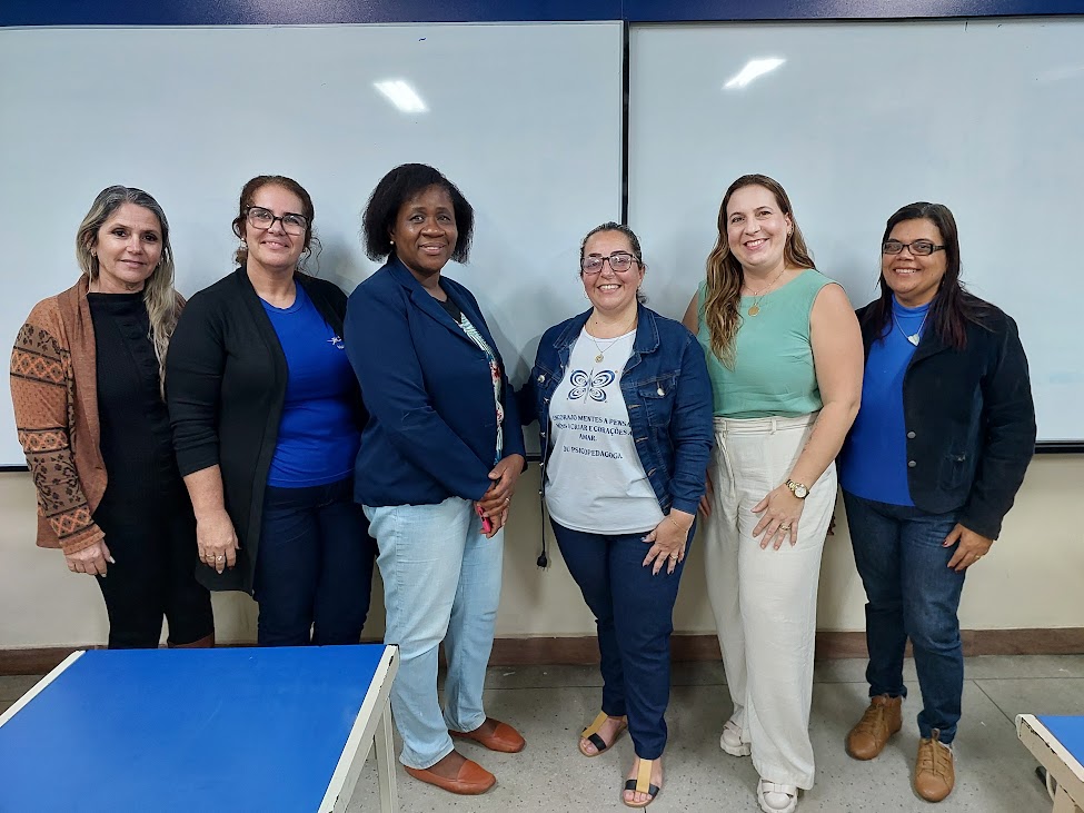 Secretária de Educação, professoras da Rede Municipal, psicóloga e coordenadora do CAEEM unidas pelo propósito do carinho e acolhimento