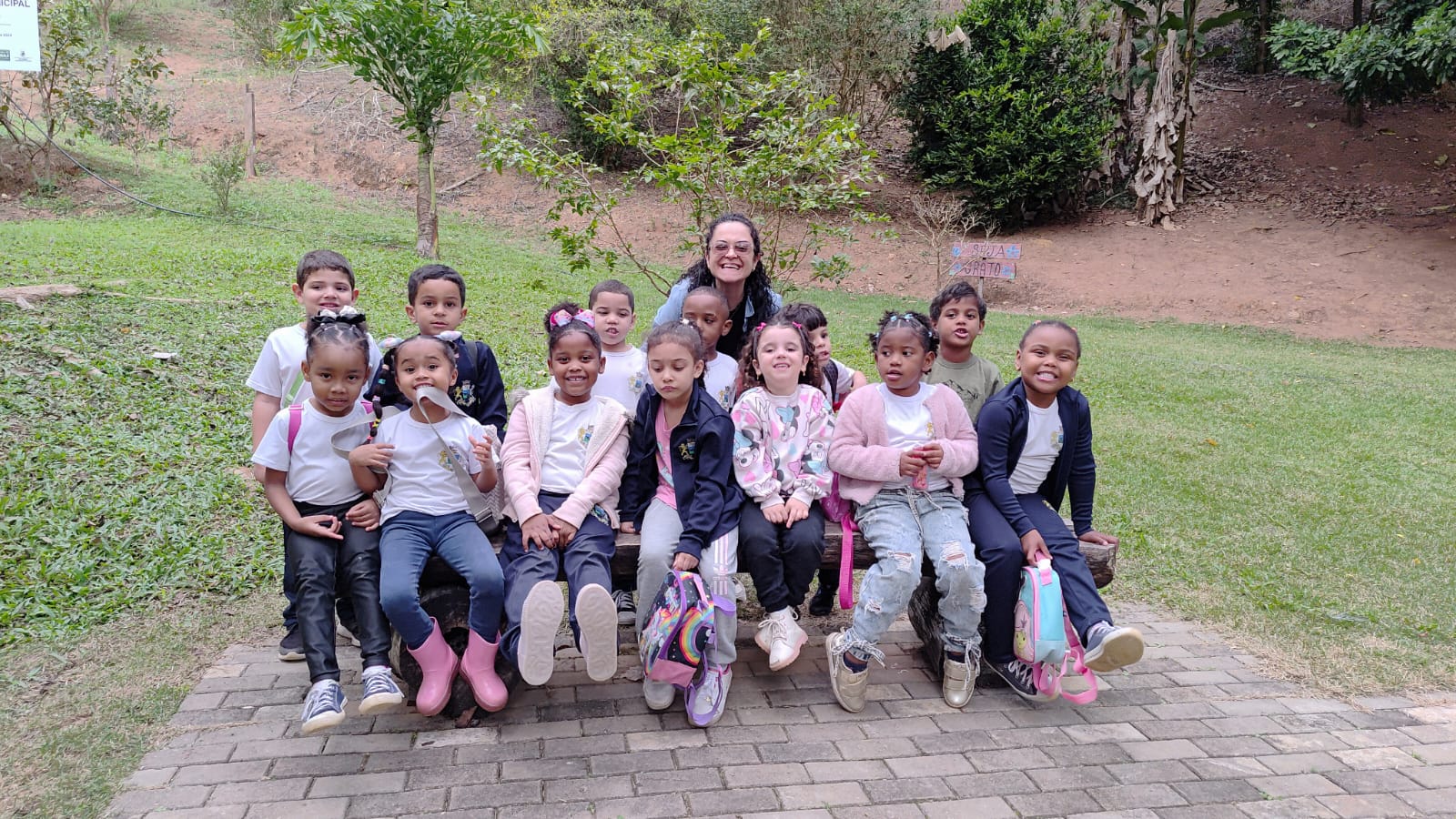 Criançada da Escola Sylvia Bath Rosas não escondeu a felicidade da visitação ao Horto Municipal de Cantagalo